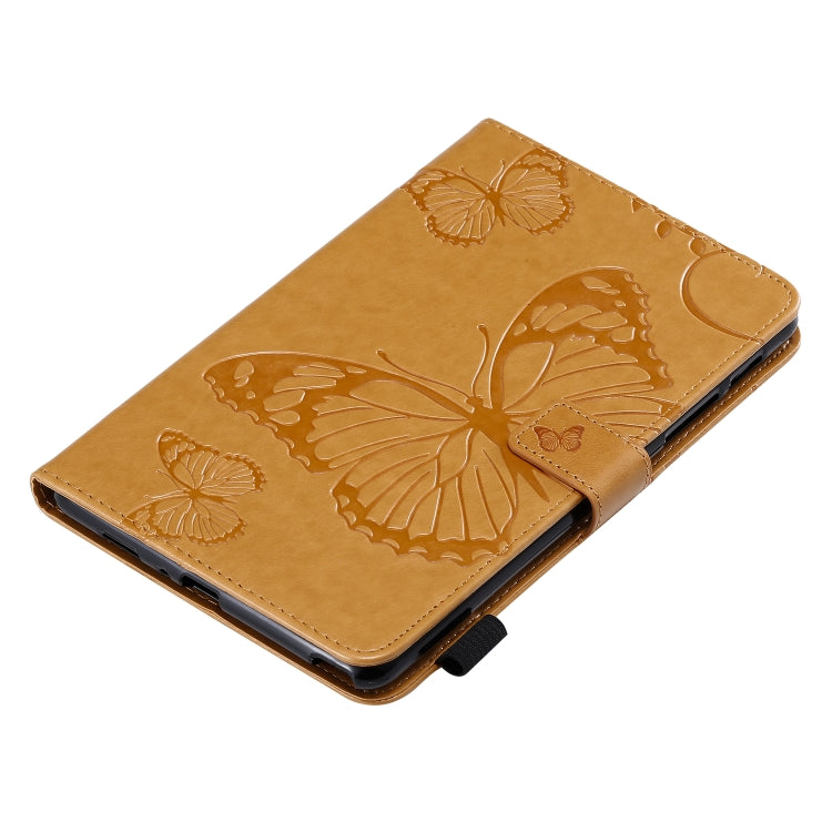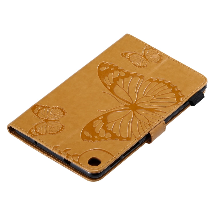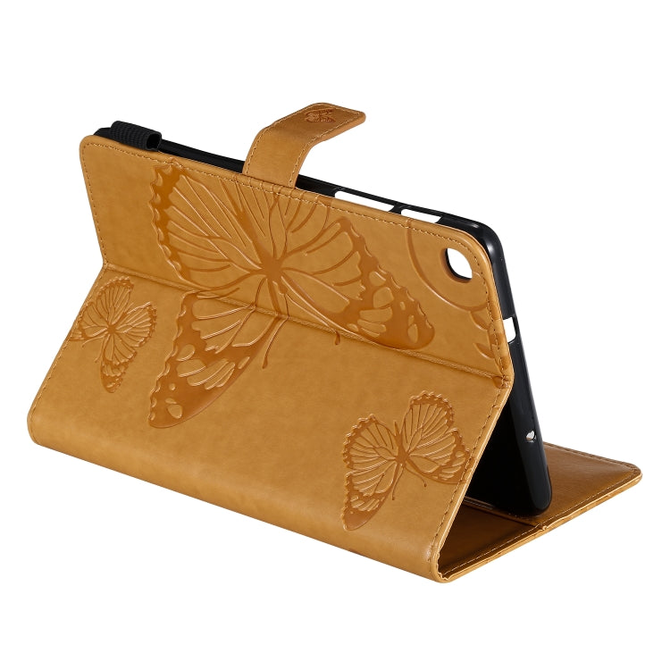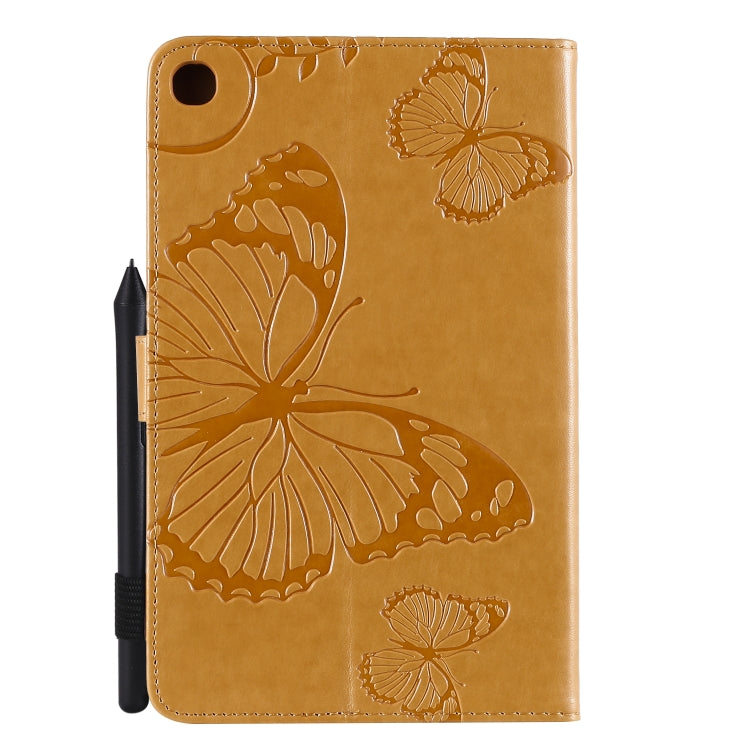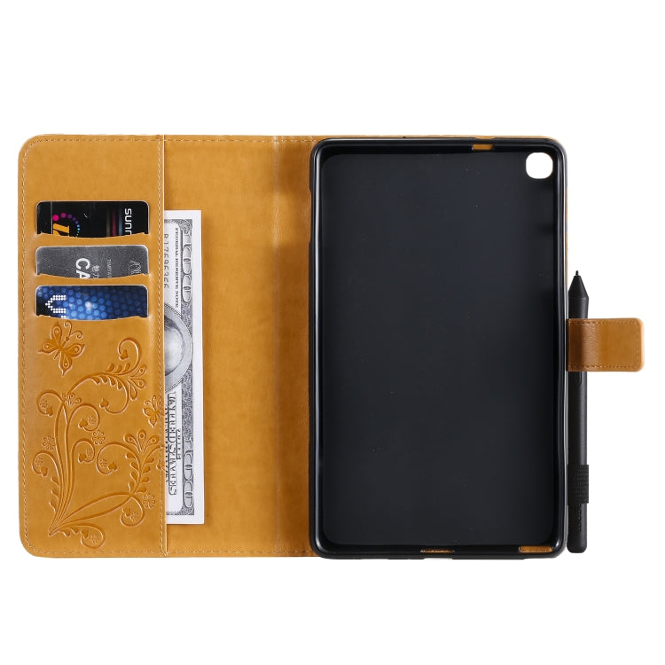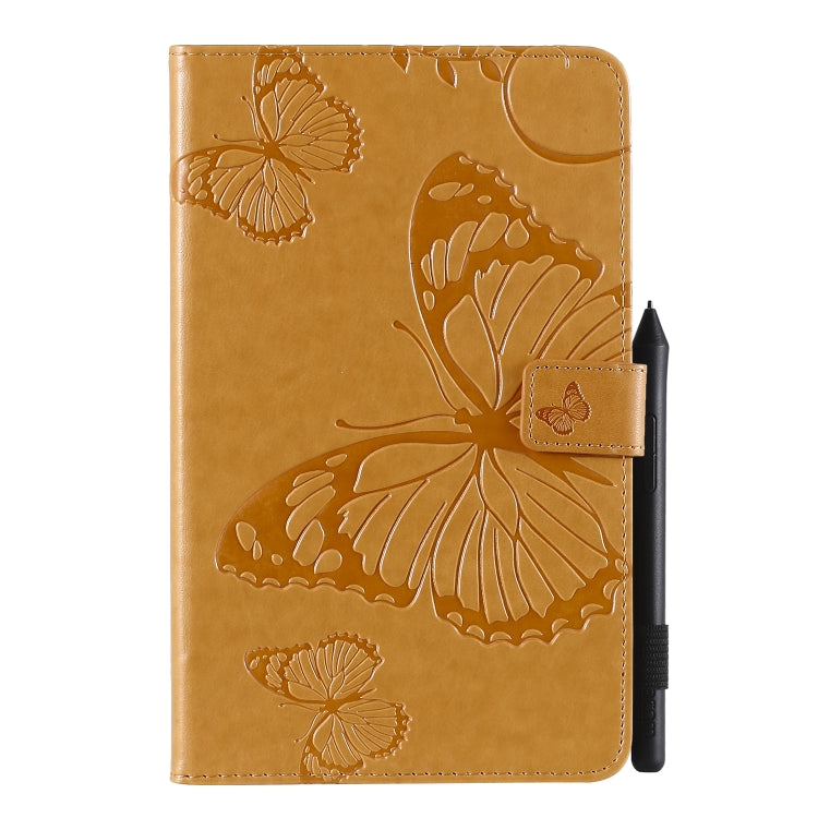 For Galaxy Tab A 8.0 & S Pen (2019) Pressed Printing Butterfly Pattern Horizontal Flip PU Leather Case with Holder & Card Slots & Wallet & Pen Slot(Yellow)