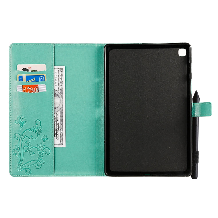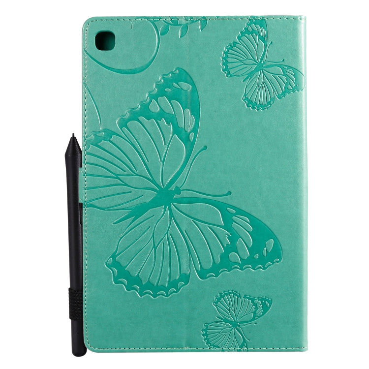 For Galaxy Tab S5e Pressed Printing Butterfly Pattern Horizontal Flip PU Leather Case with Holder & Card Slots & Wallet & Pen Slot(Green)
