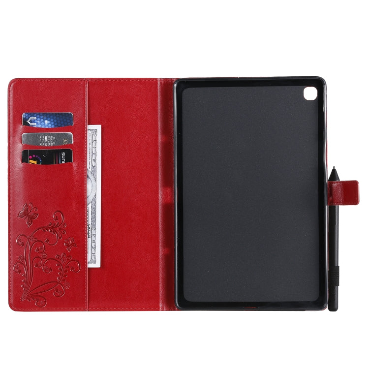For Galaxy Tab S5e Pressed Printing Butterfly Pattern Horizontal Flip PU Leather Case with Holder & Card Slots & Wallet & Pen Slot(Red)