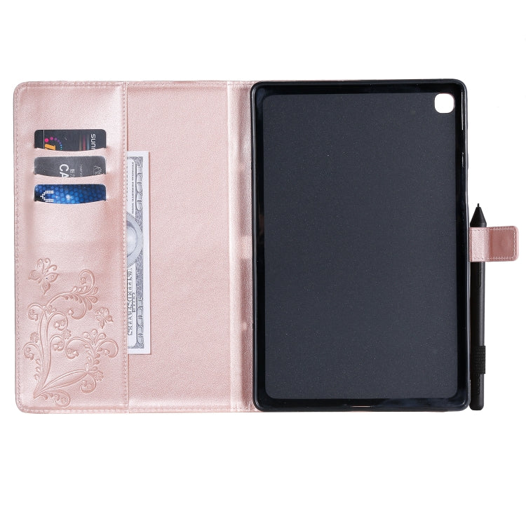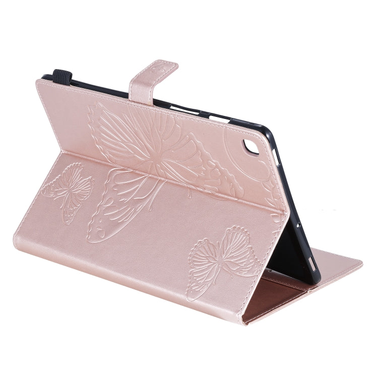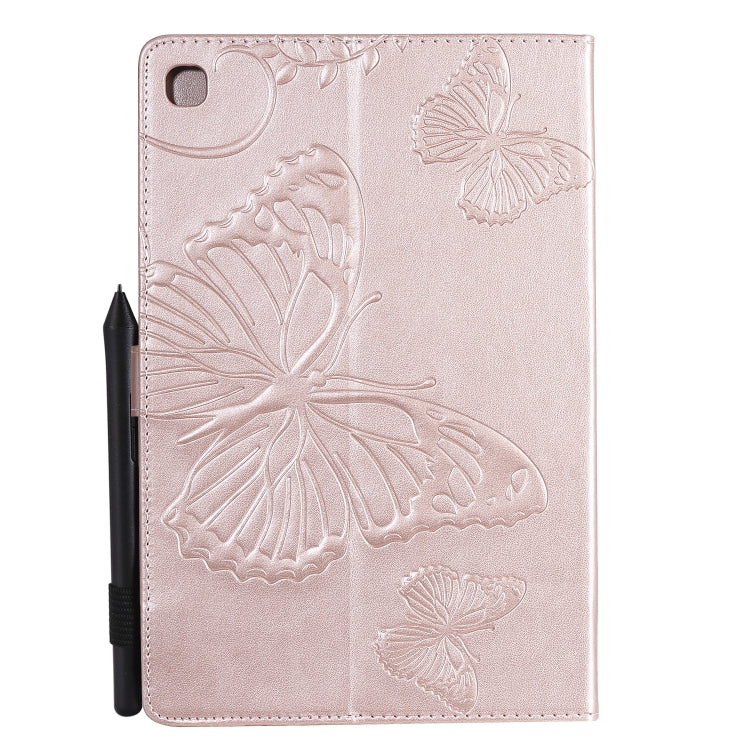 For Galaxy Tab S5e Pressed Printing Butterfly Pattern Horizontal Flip PU Leather Case with Holder & Card Slots & Wallet & Pen Slot(Rose Gold)
