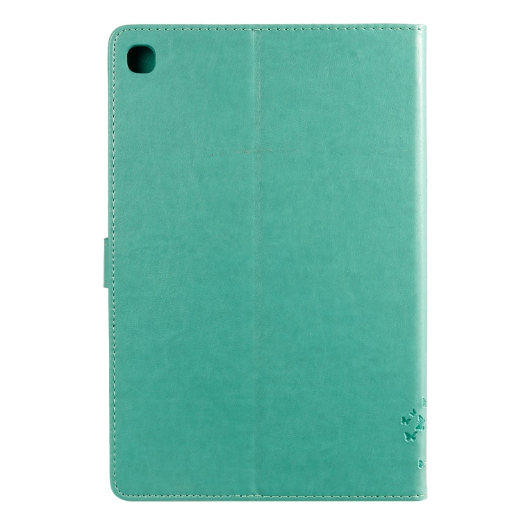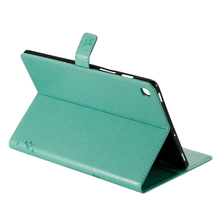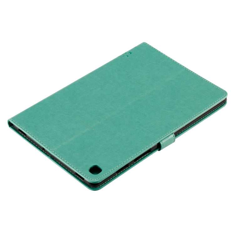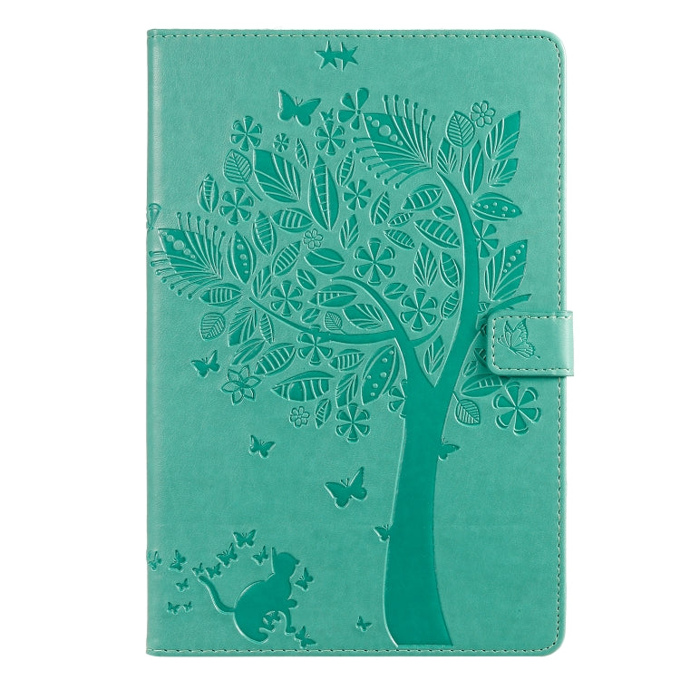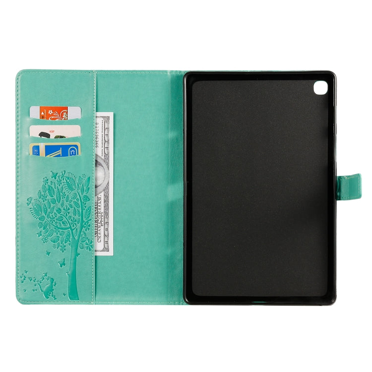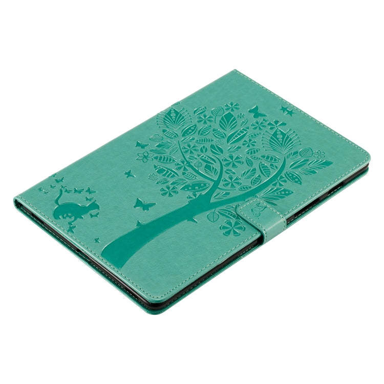For Galaxy Tab S5e Pressed Printing Cat and Tree Pattern Horizontal Flip Leather Case with Holder & Card Slots & Wallet(Green)