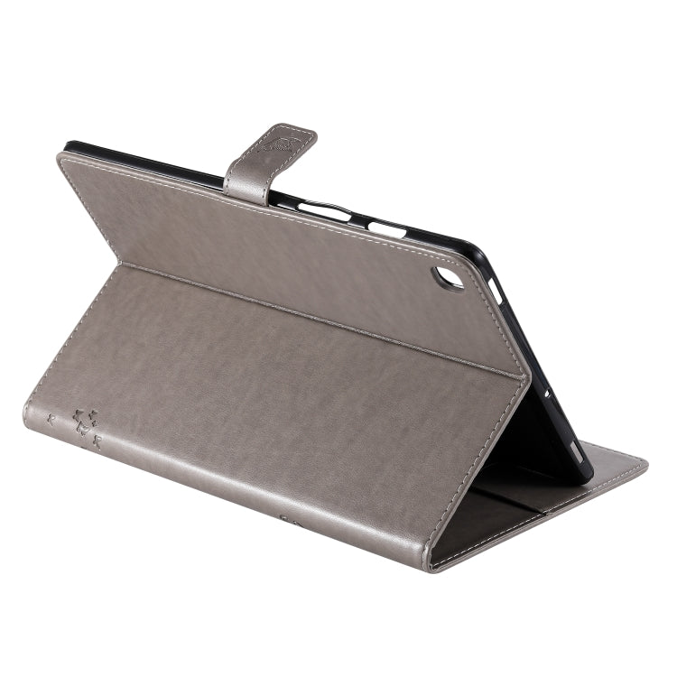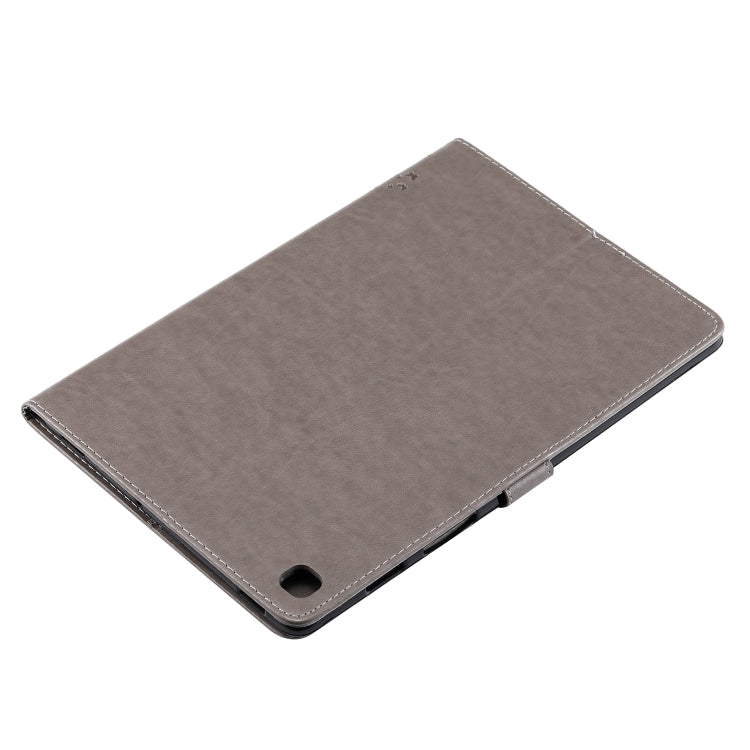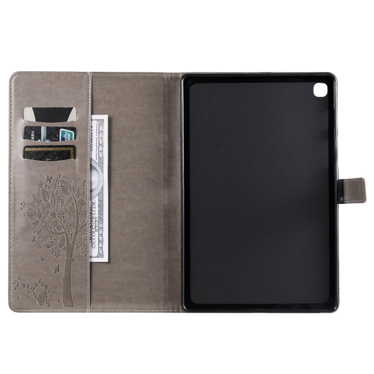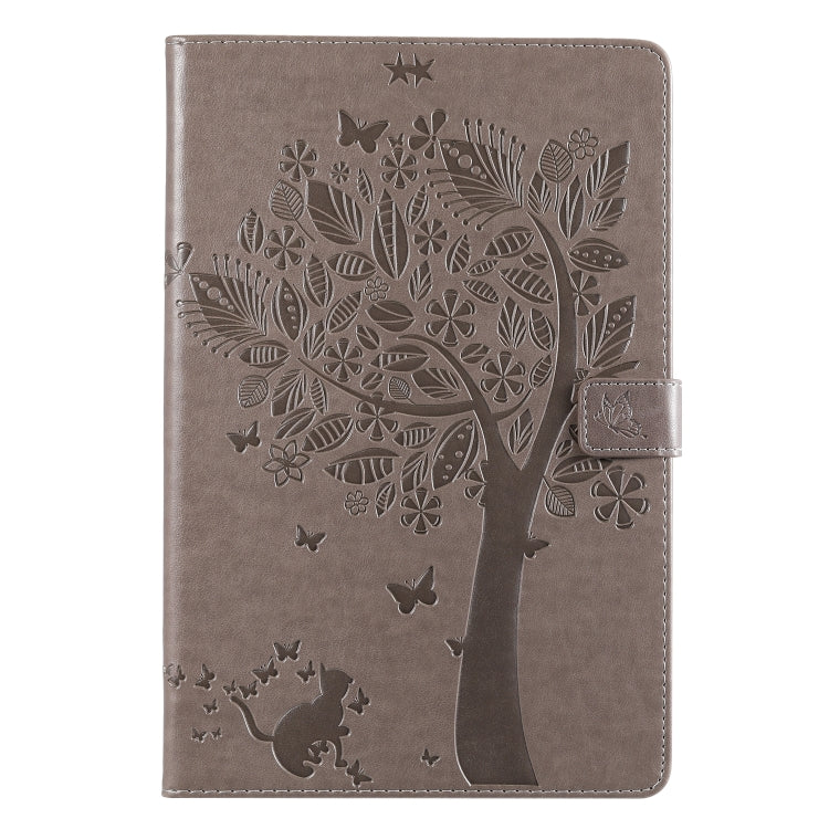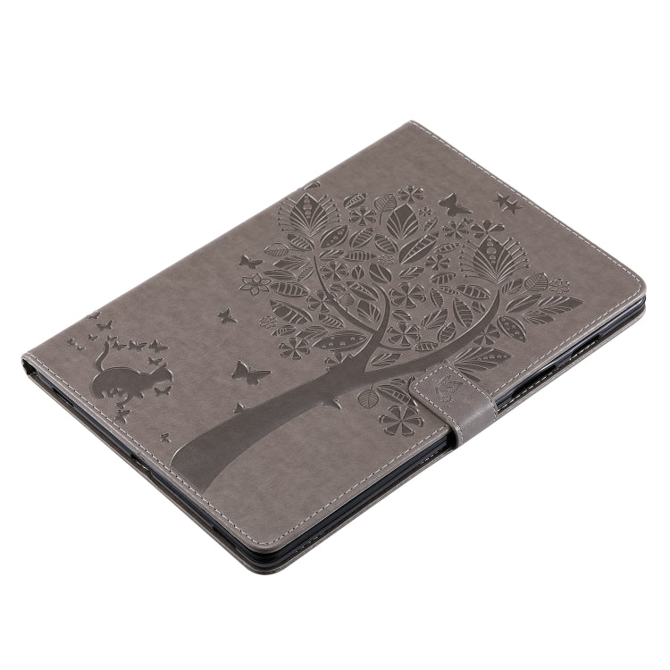 For Galaxy Tab S5e Pressed Printing Cat and Tree Pattern Horizontal Flip Leather Case with Holder & Card Slots & Wallet(Grey)