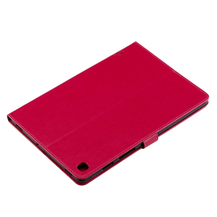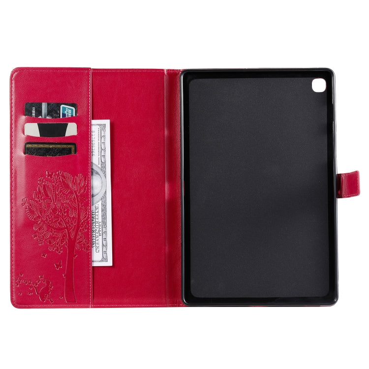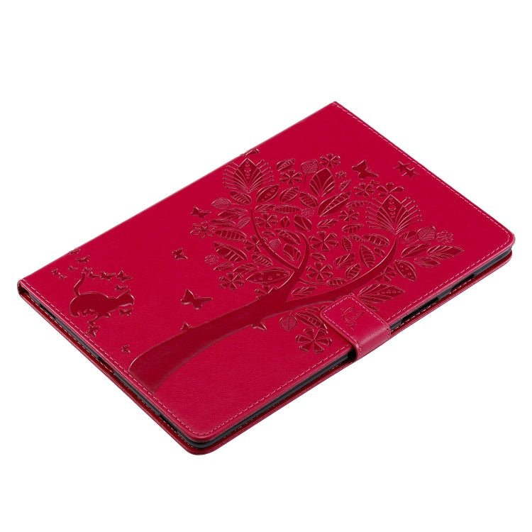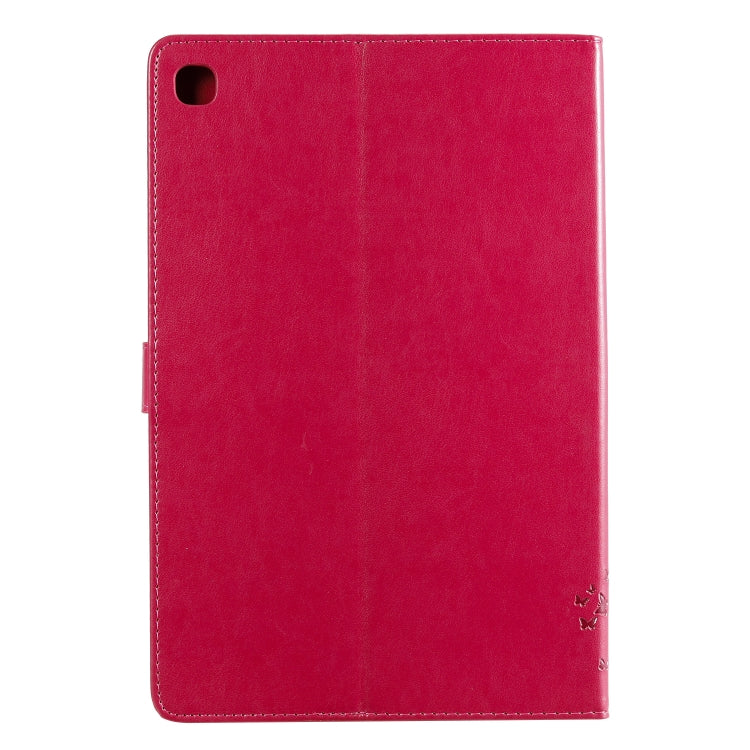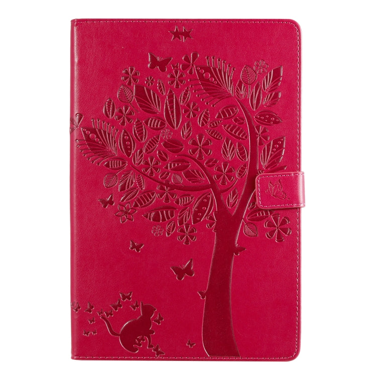 For Galaxy Tab S5e Pressed Printing Cat and Tree Pattern Horizontal Flip Leather Case with Holder & Card Slots & Wallet(Rose Red)