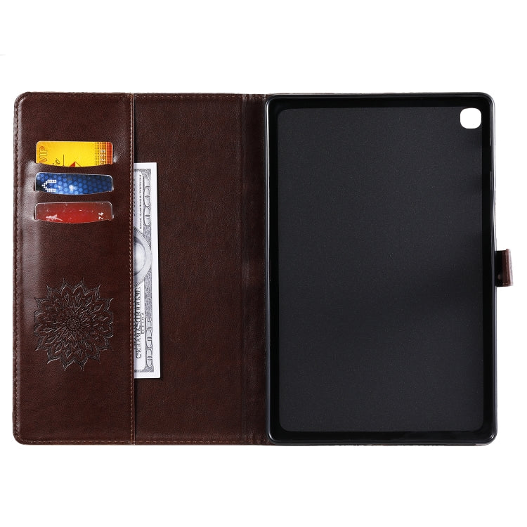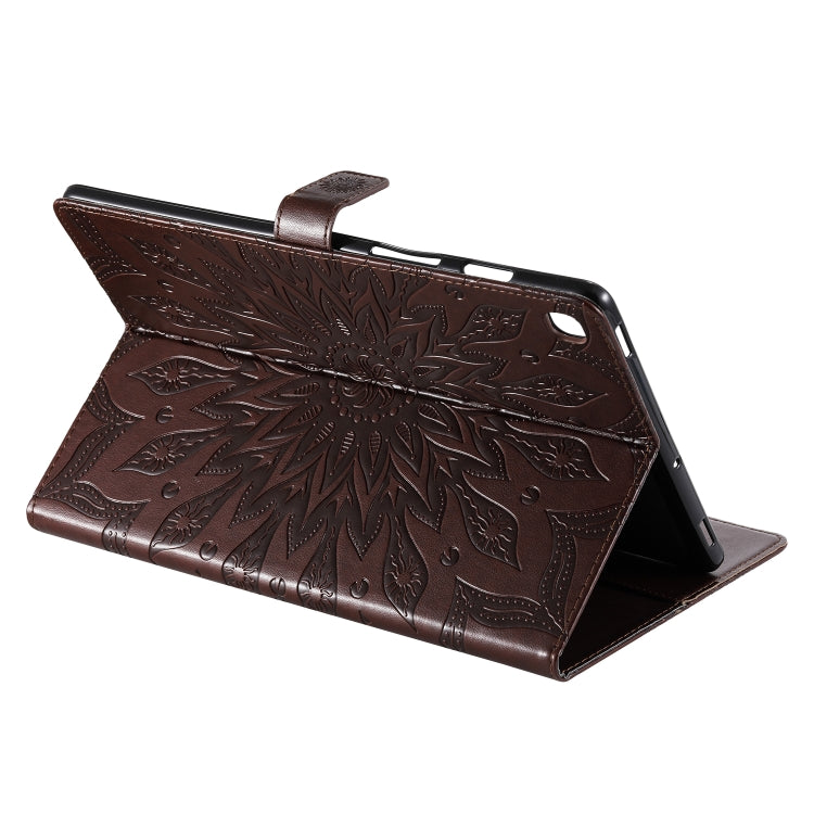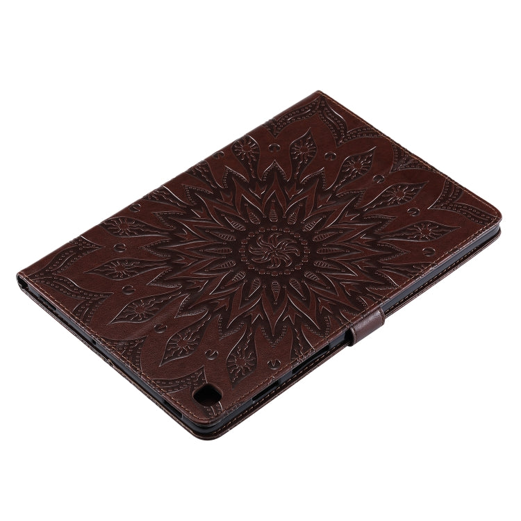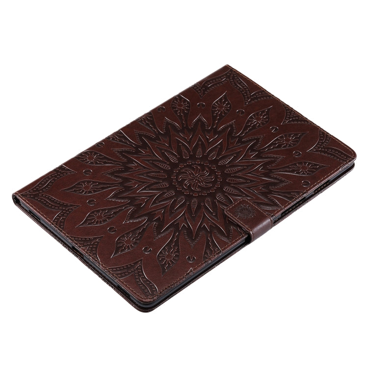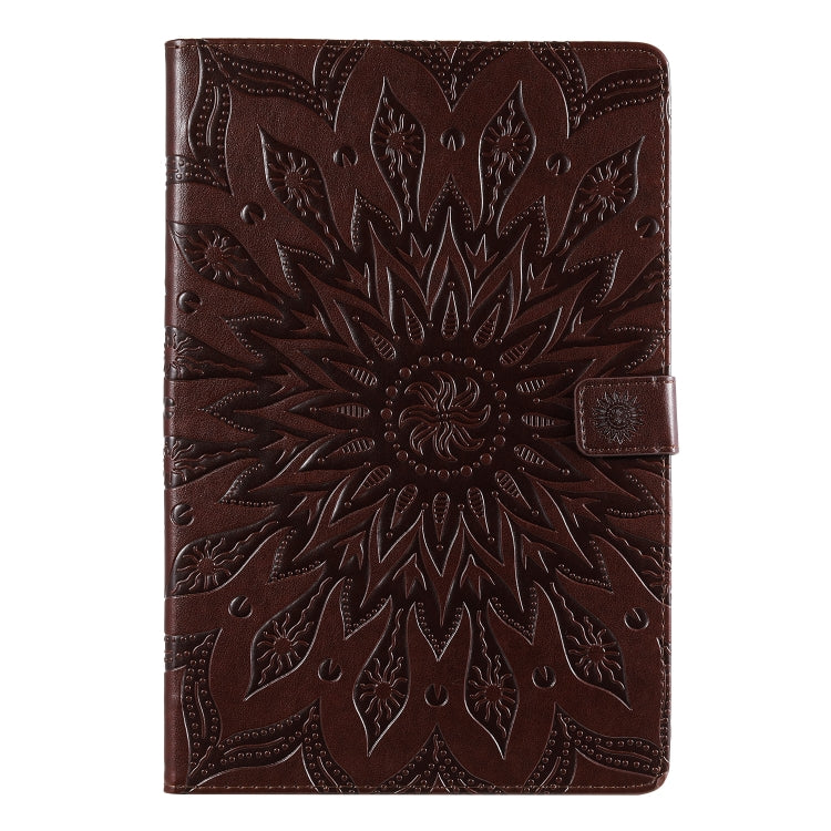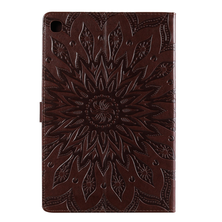 For Galaxy Tab S5e Pressed Printing Sun Flower Pattern Horizontal Flip Leather Case with Holder & Card Slots & Wallet(Brown)