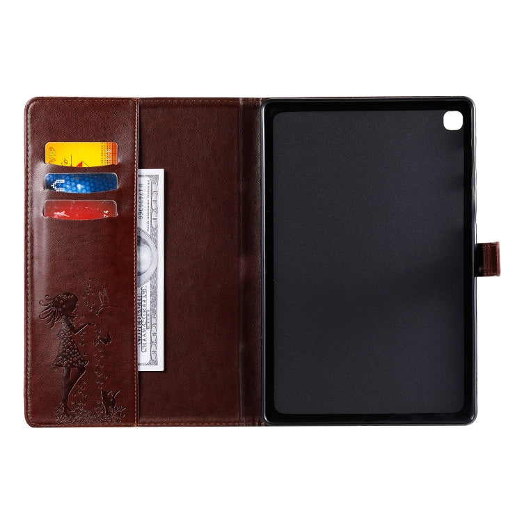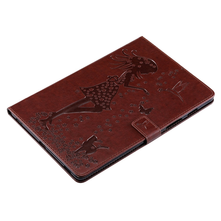 For Galaxy Tab S5e Pressed Printing Woman and Cat Pattern Horizontal Flip Leather Case with Holder & Card Slots & Wallet(Brown)