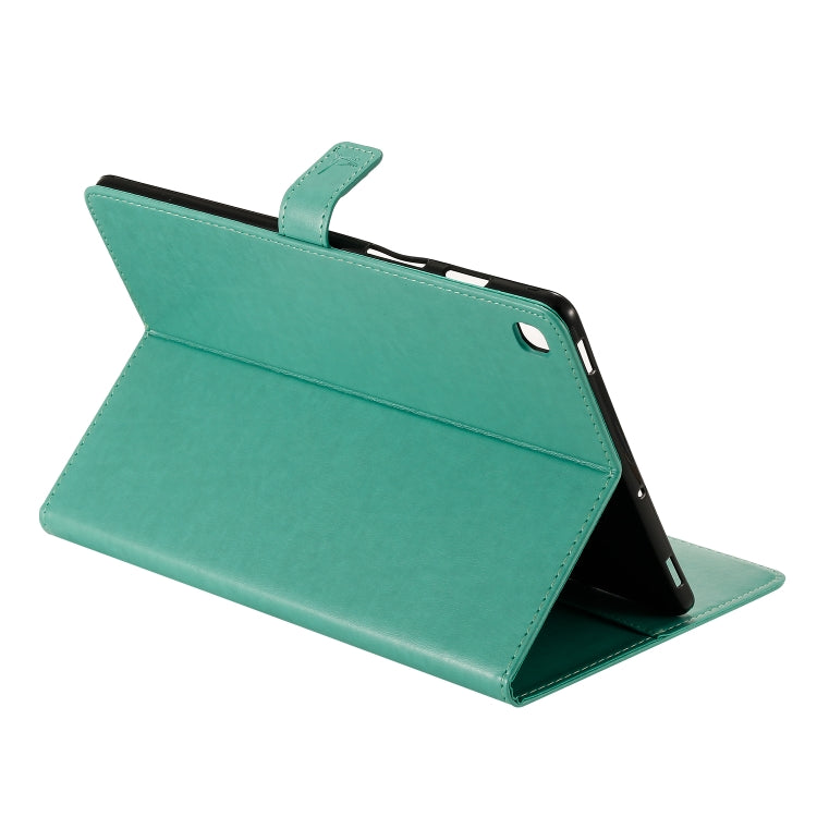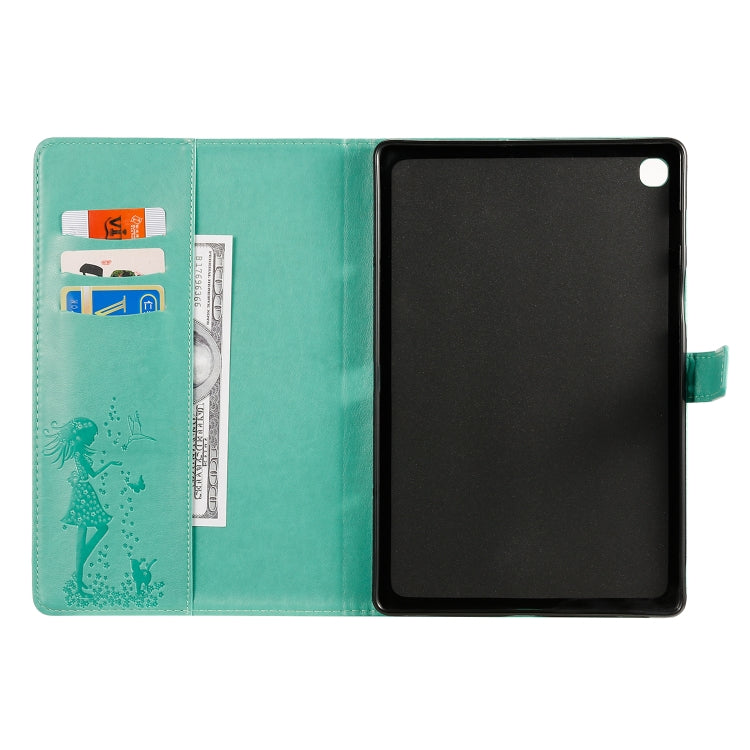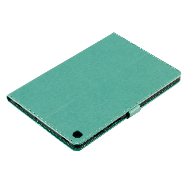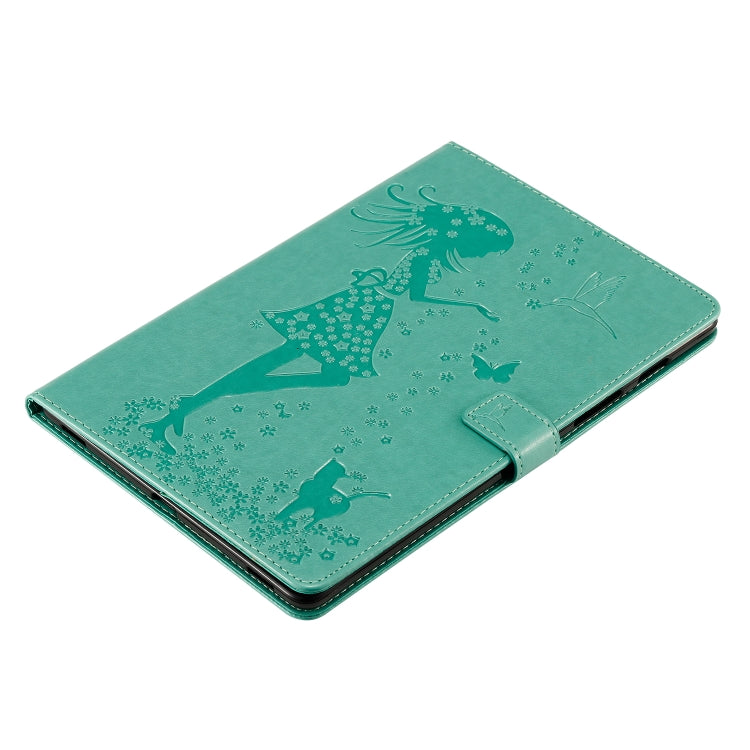 For Galaxy Tab S5e Pressed Printing Woman and Cat Pattern Horizontal Flip Leather Case with Holder & Card Slots & Wallet(Green)