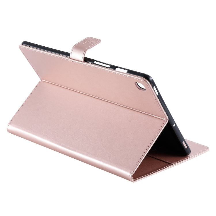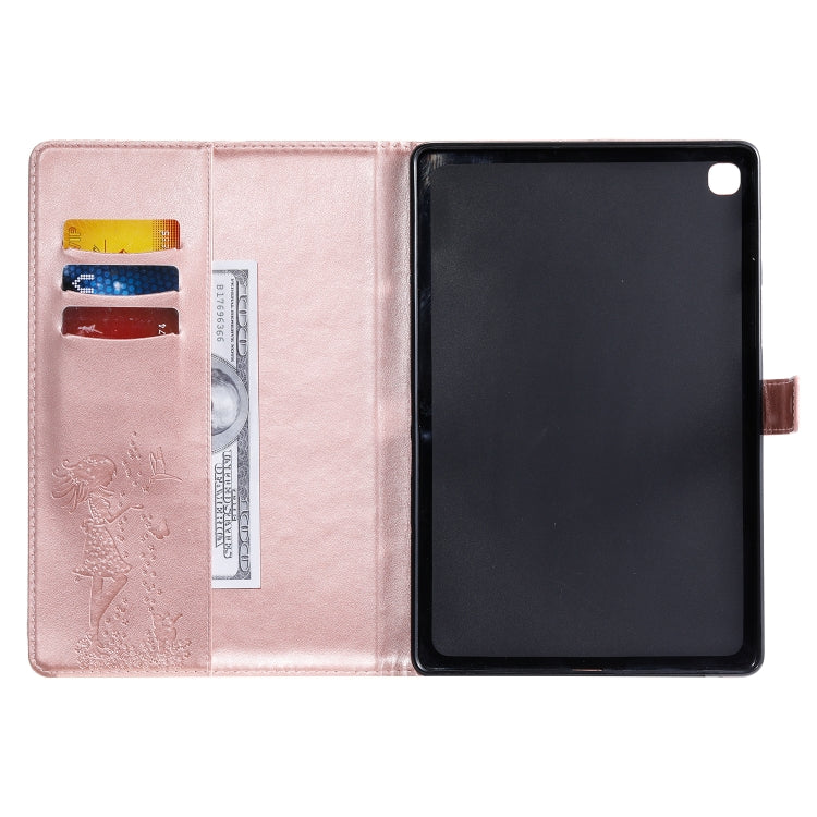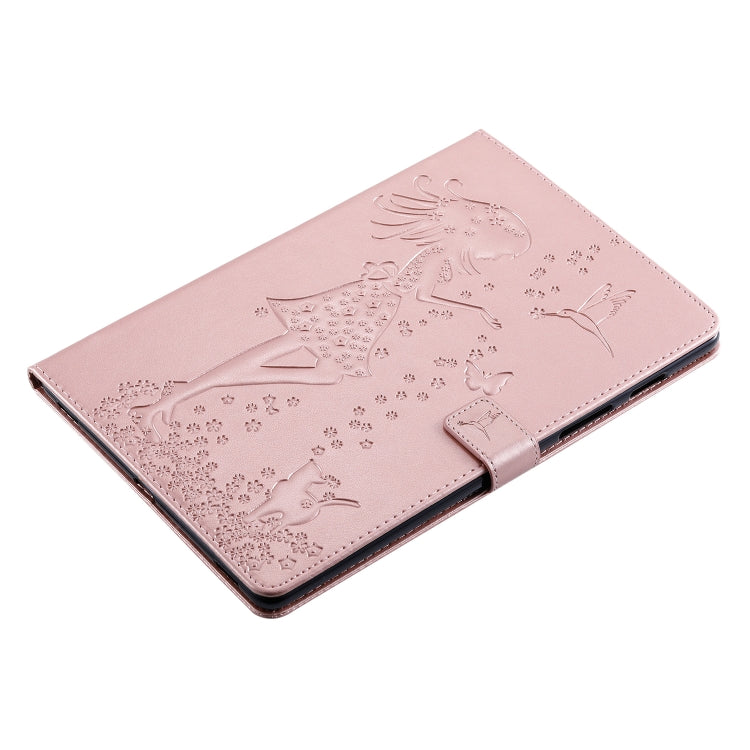For Galaxy Tab S5e Pressed Printing Woman and Cat Pattern Horizontal Flip Leather Case with Holder & Card Slots & Wallet(Rose Gold)