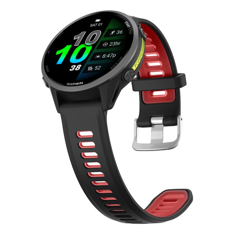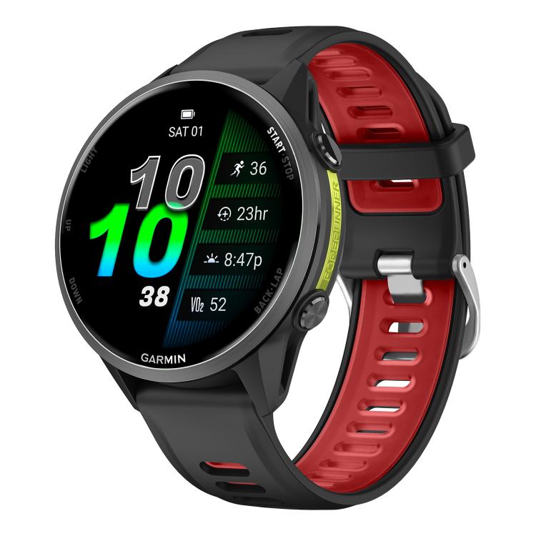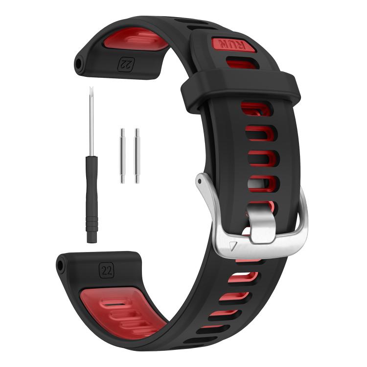For Garmin Forerunner 970 Silver Buckle Two Color Silicone Watch Band(Black Red)