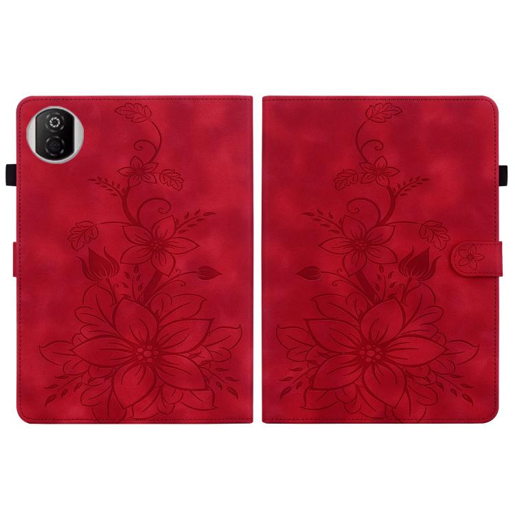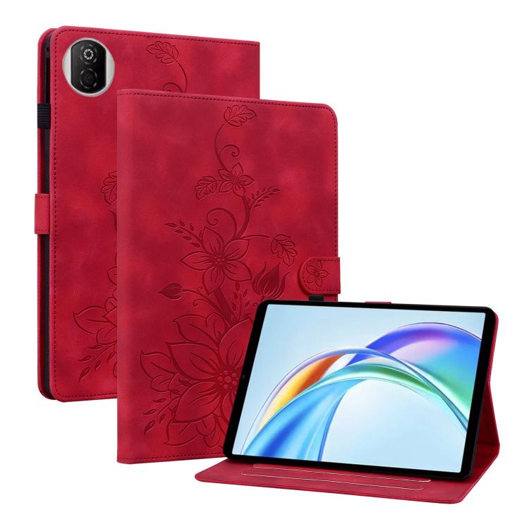 For Honor Pad X7 Lily Embossed Leather Tablet Case(Red)