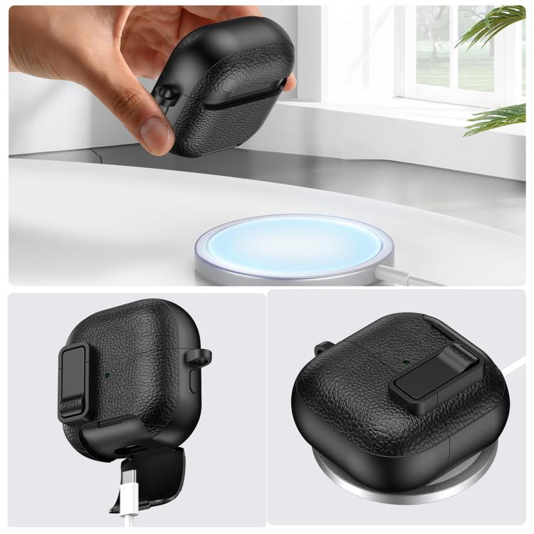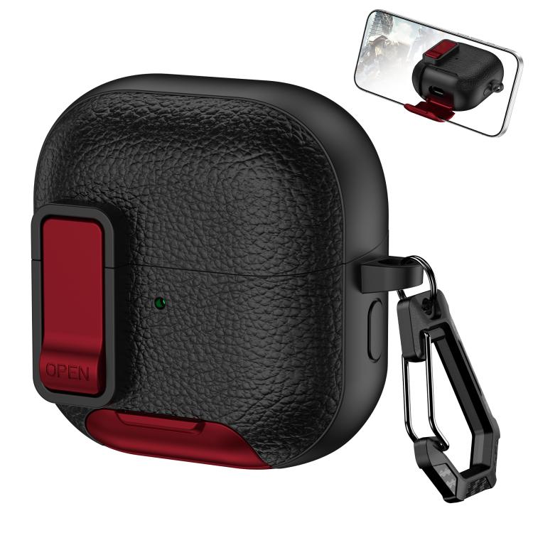 For Huawei FreeClip 2 Leather Texture Wireless Earphones Case with Hook & Holder(Black Red)