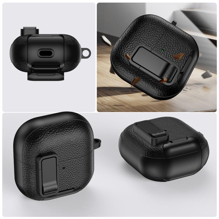 For Huawei FreeClip 2 Leather Texture Wireless Earphones Case with Hook & Holder(Black White)