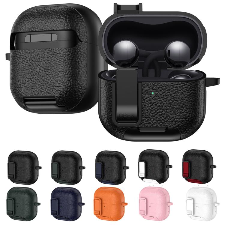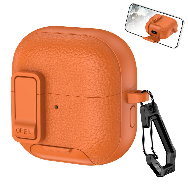 For Huawei FreeClip 2 Leather Texture Wireless Earphones Case with Hook & Holder(Orange)