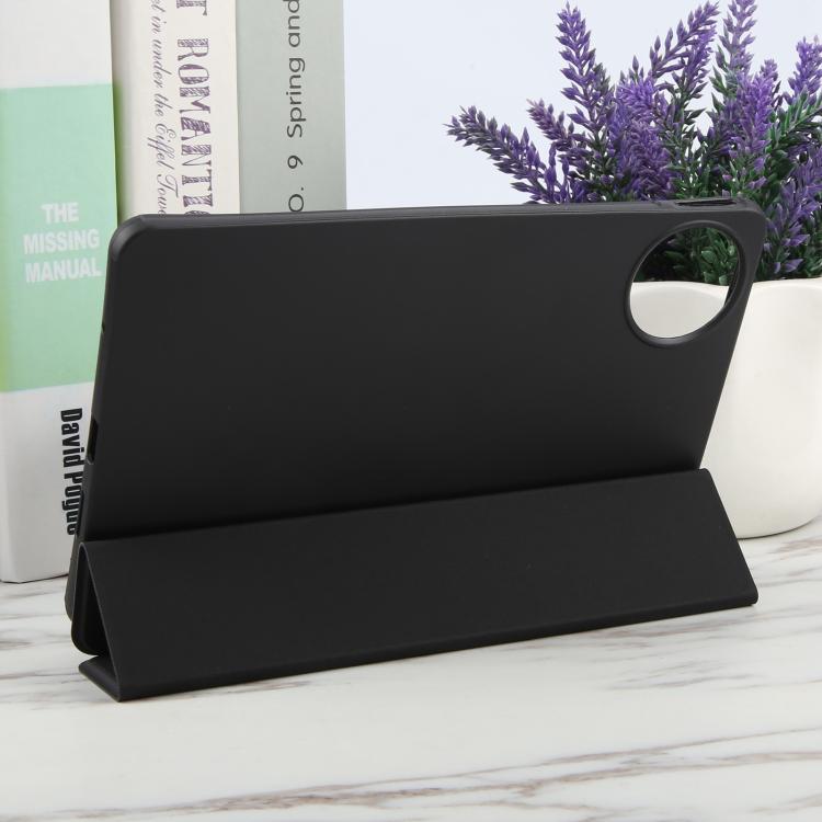 For Huawei MatePad Mini 2025 GEBEI 3-folding Holder Shockproof Flip Leather Tablet Case(Black)
