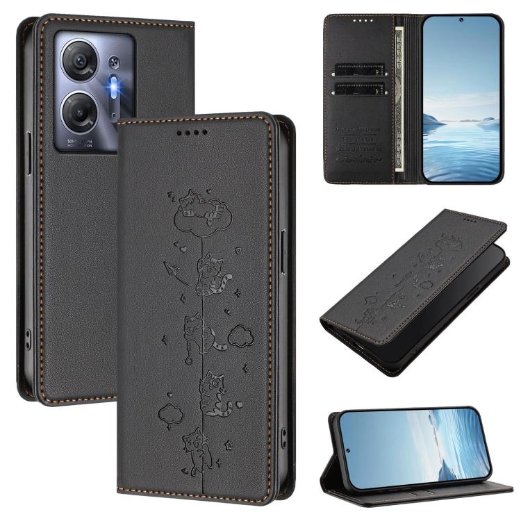 For Infinix Hot 30 5G Cute Cats Embossed Magnetic RFID Vegan Leather Phone Case(Black)