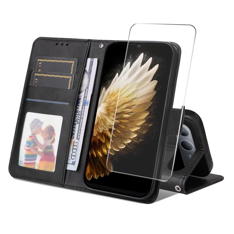 For Infinix Hot 60i 5G ENKAY Card Wallet Calf Texture Leather Phone Case with Screen Film(Black)