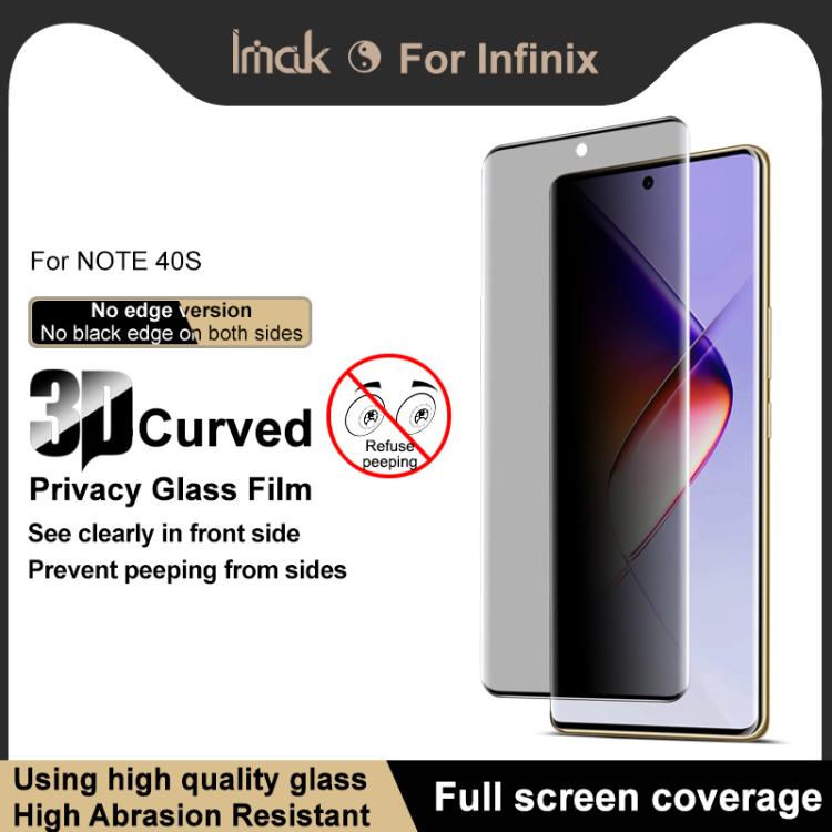 For Infinix Note 40S imak No Edge Version 3D Curved Privacy Full Screen Tempered Glass Film