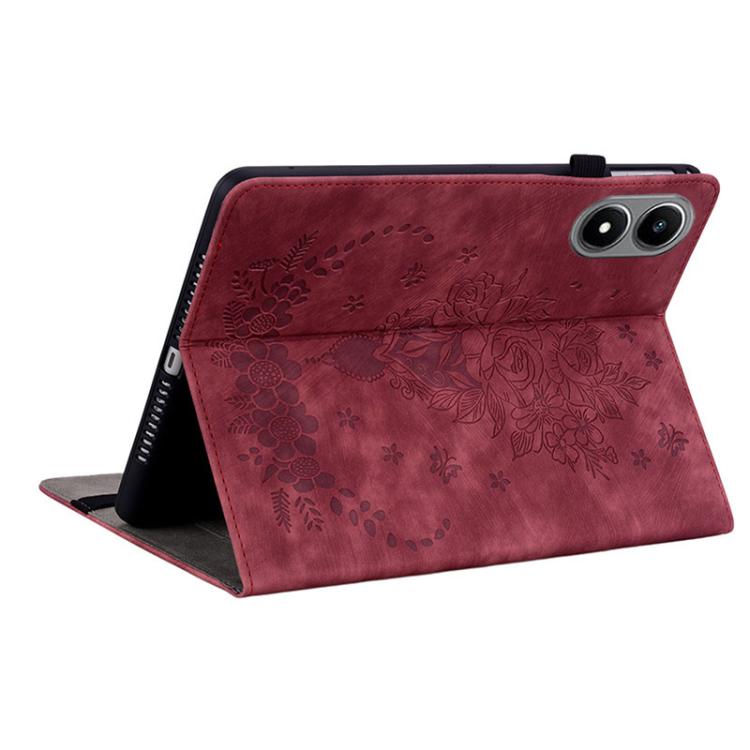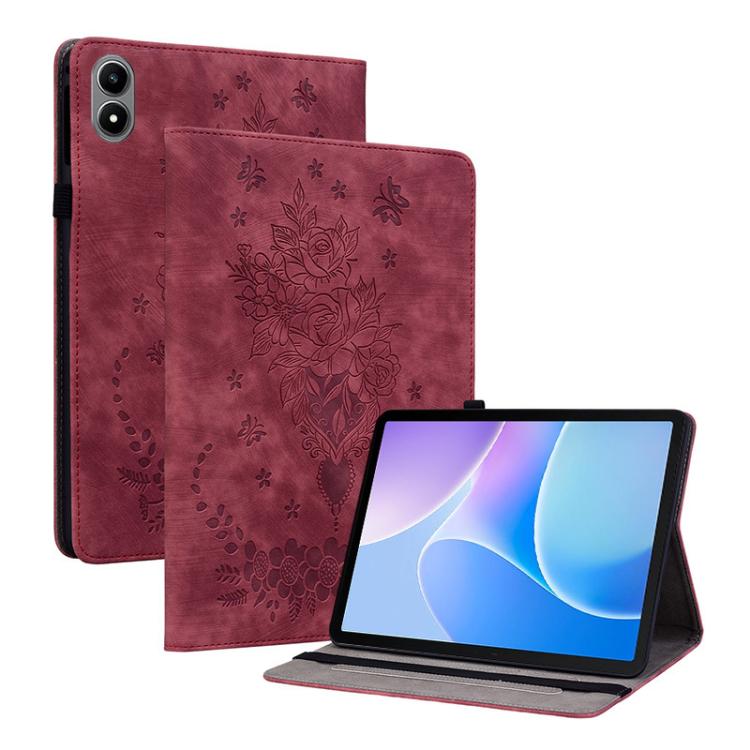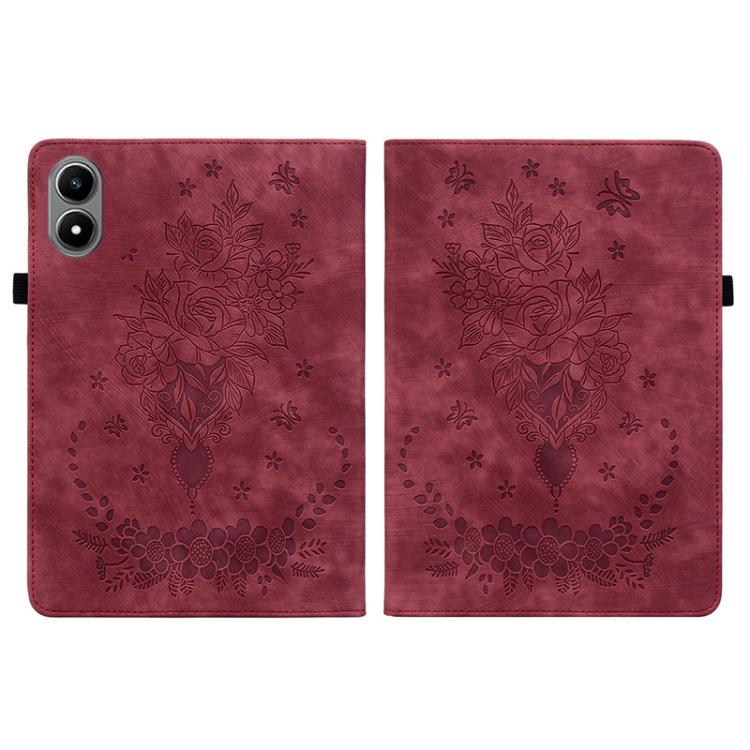 For Infinix Xpad 20 Butterfly Rose Embossed Leather Tablet Case(Red)