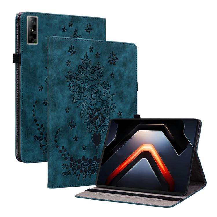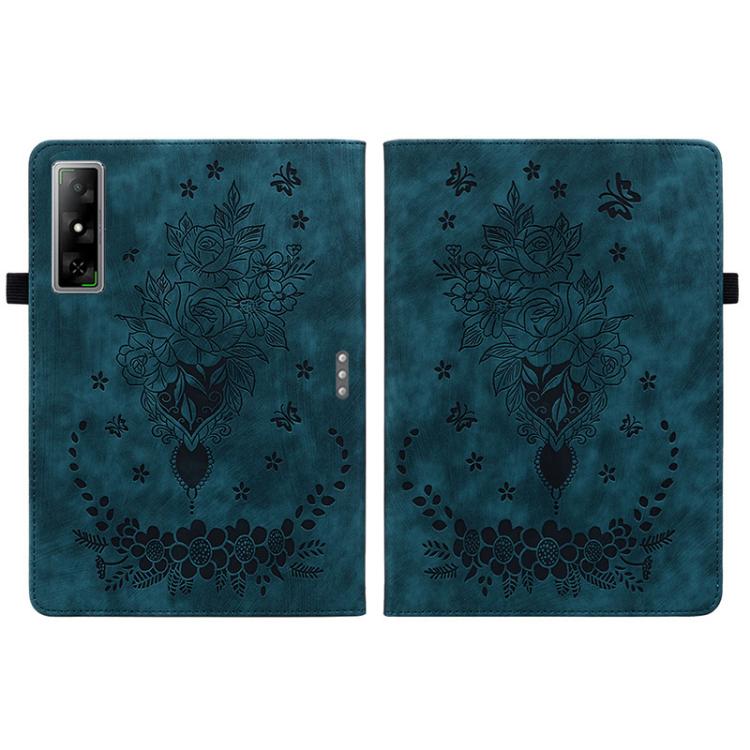 For Infinix Xpad GT Butterfly Rose Embossed Leather Tablet Case(Dark Blue)