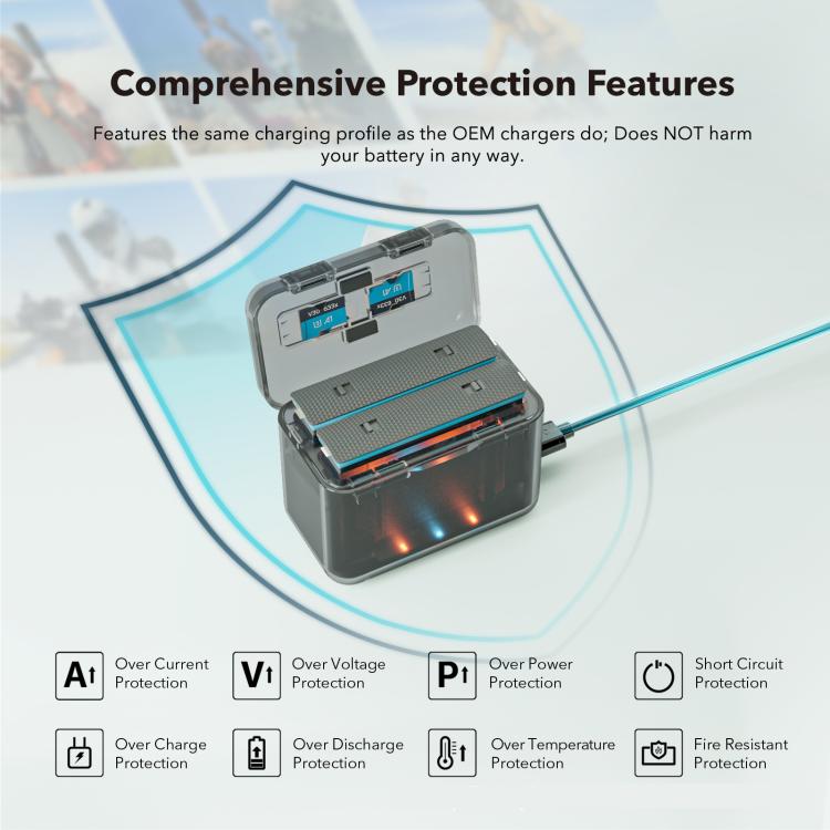 For Insta360 X4 SYMIK Dual-Channel Battery Charger & Storage Case Charging Hub With LED Indicators(X4CC-B)