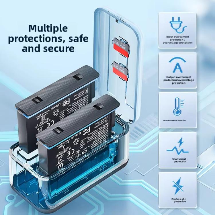 For Insta360 X5 Fast Charger With Digital Display & Dual Charging Case Battery Storage Box(Black)