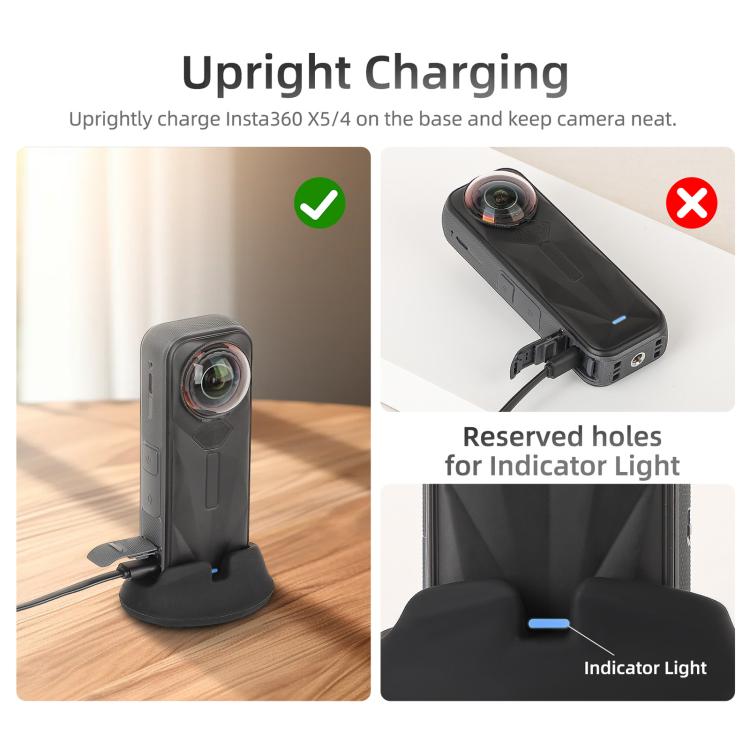 3. Uprightly charge X5 / X4 on the base and keep camera neat.