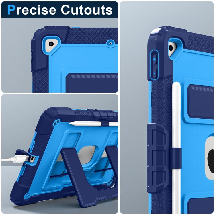 For iPad 10.2 1021 / 10.5 2019 Big Holder Silicone Hydric PC Tablet Case with Shoulder Strap(Navy Blue Blue)