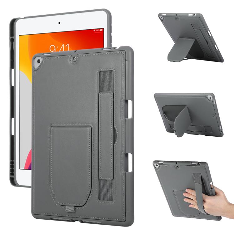 For iPad 10.2 1021 / 10.5 2019 Hand Grip Holder Tablet Case with Pen Slot(Grey)