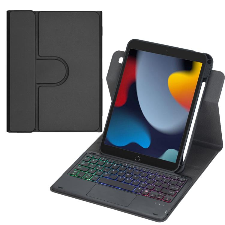 For iPad 10.2 2021 / 2019 / iPad Air 3 360-degree Rotation Backlight Bluetooth Keyboard Leather Tablet Case with Touchpad(Black)