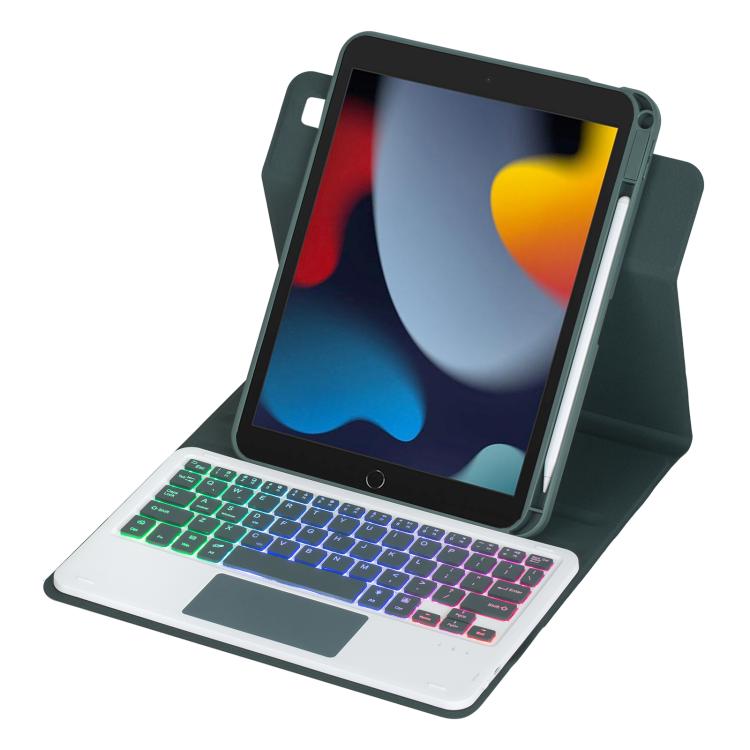For iPad 10.2 2021 / 2019 / iPad Air 3 360-degree Rotation Backlight Bluetooth Keyboard Leather Tablet Case with Touchpad(Dark Green)