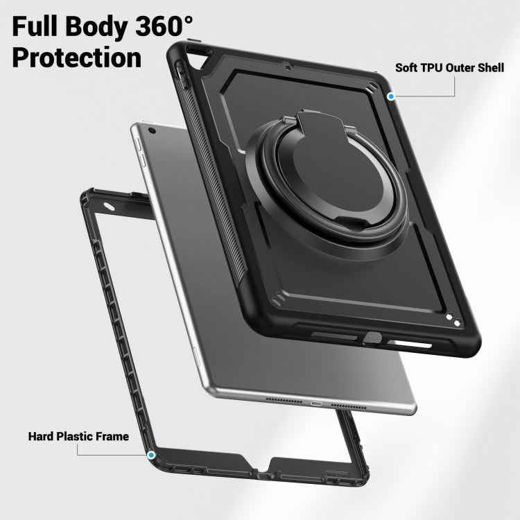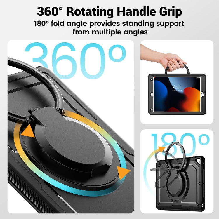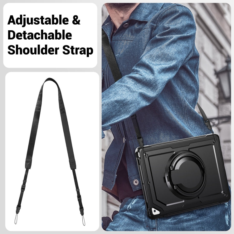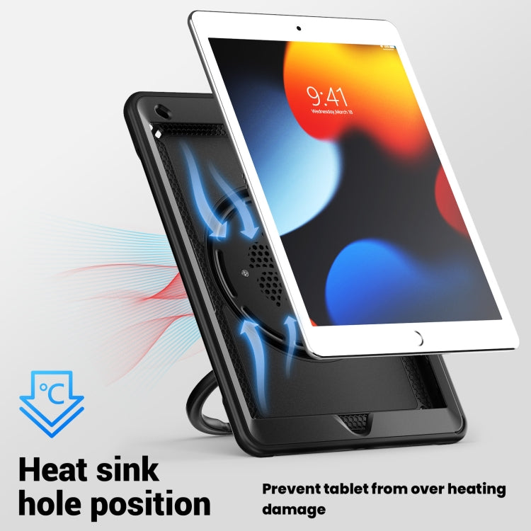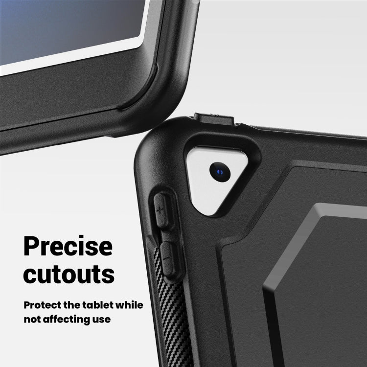 For iPad 10.2 2021 / 2020 / 10.5 2019 Honeycomb Hybrid Tablet Case with Handle Holder & Strap(Black)