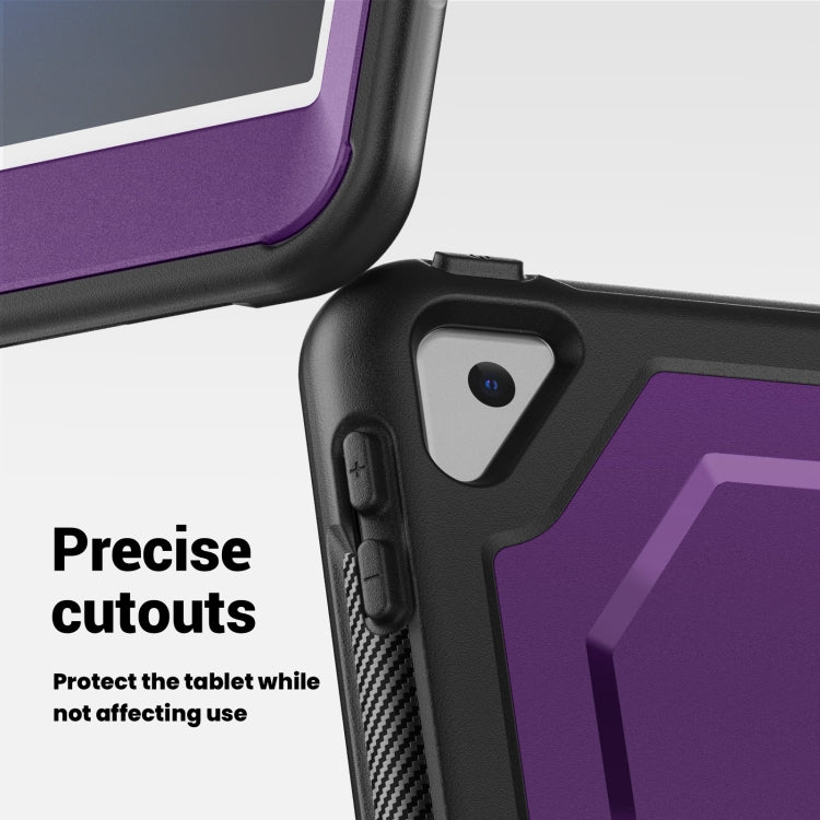 For iPad 10.2 2021 / 2020 / 10.5 2019 Honeycomb Hybrid Tablet Case with Handle Holder & Strap(Purple)