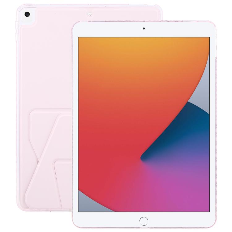 For iPad 10.2 2021 / 2020 / 10.5 Folding Magnetic Holder Acrylic Leather Back Tablet Case(Pink)