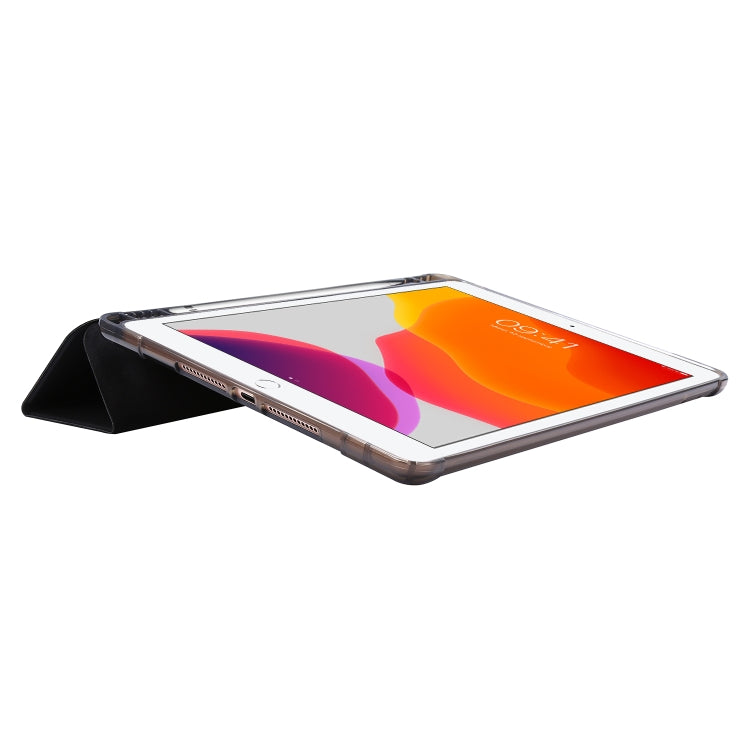 For iPad 10.2 2021 / 2020 / 2019 Airbag Horizontal Flip Leather Case with Three-fold Holder & Pen Holder(Black)