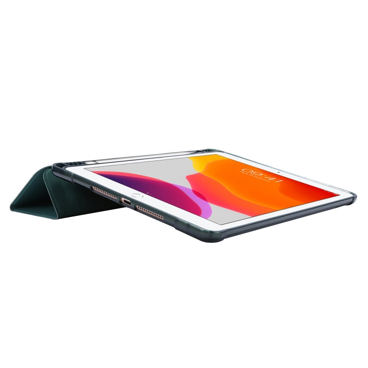 For iPad 10.2 2021 / 2020 / 2019 Airbag Horizontal Flip Leather Case with Three-fold Holder & Pen Holder(Dark Green)
