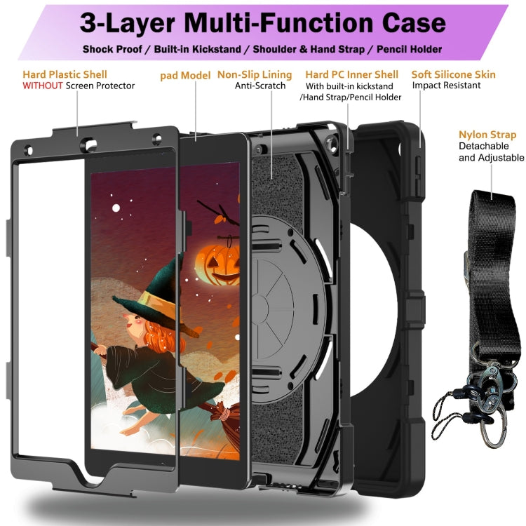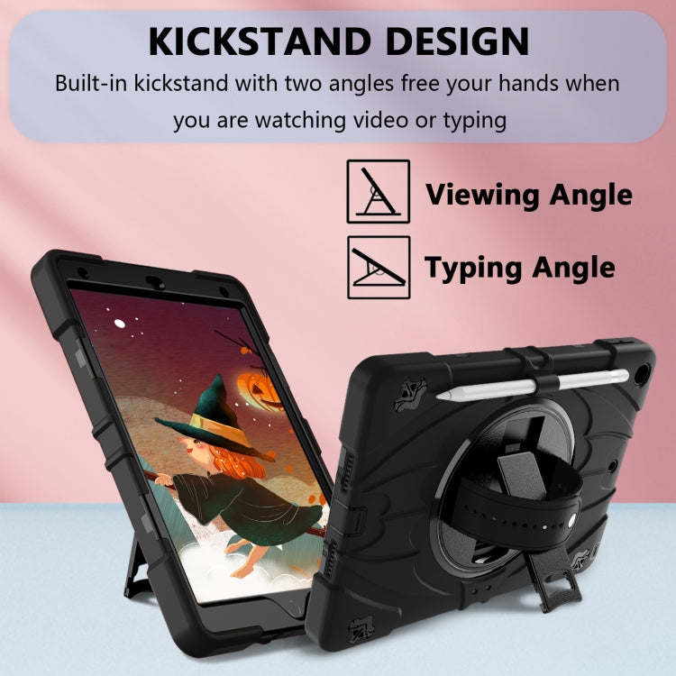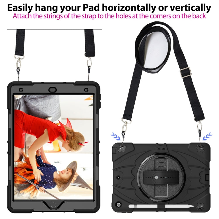 For iPad 10.2 2021 / 2020 / 2019 Bat Hand Grip Turntable Stand Tablet Case(Black)