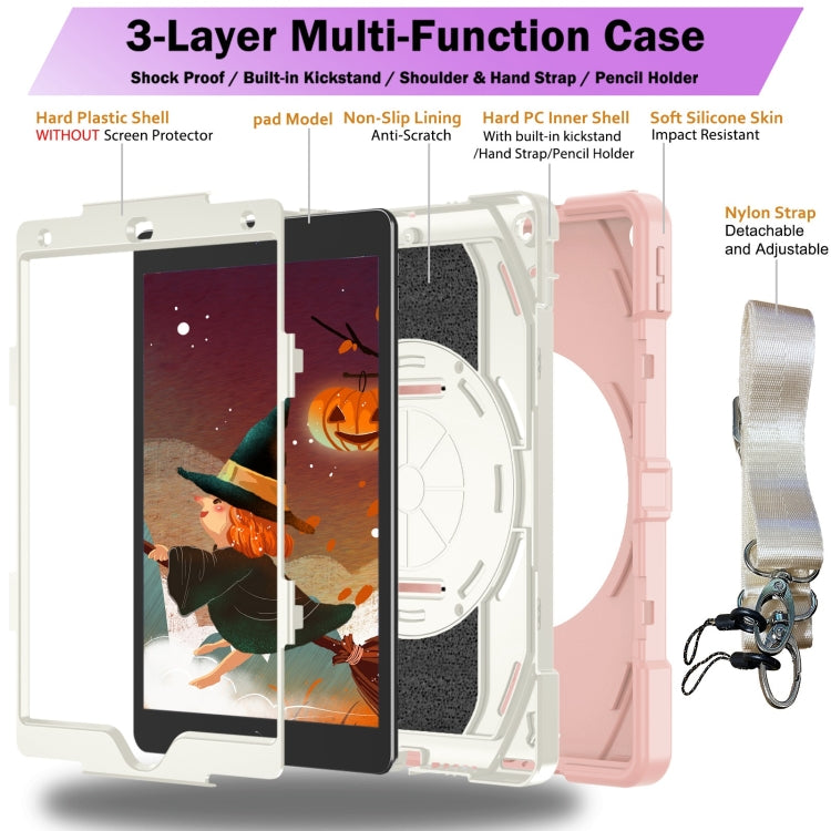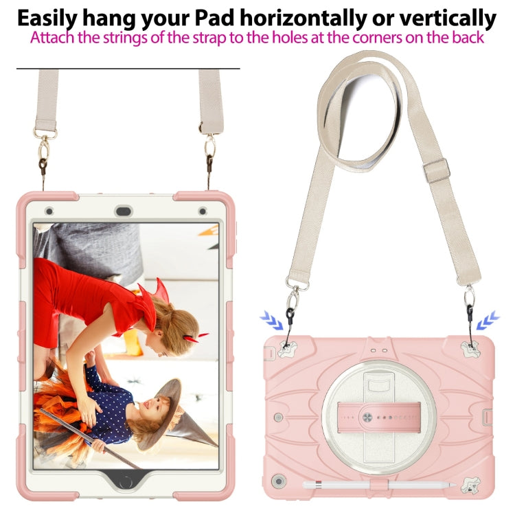 For iPad 10.2 2021 / 2020 / 2019 Bat Hand Grip Turntable Stand Tablet Case(Pink White)