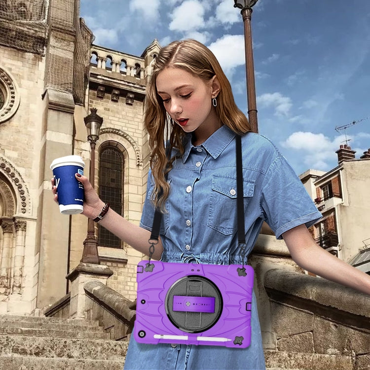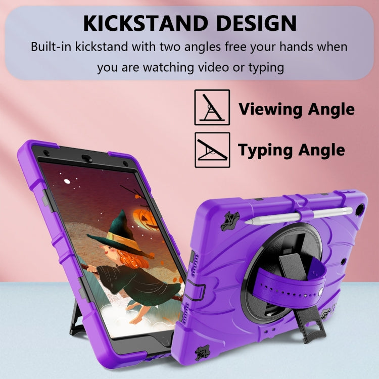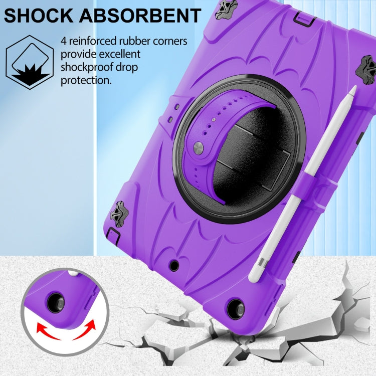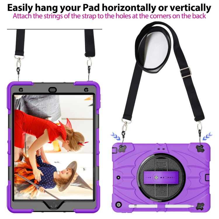 For iPad 10.2 2021 / 2020 / 2019 Bat Hand Grip Turntable Stand Tablet Case(Purple Black)