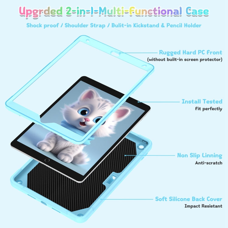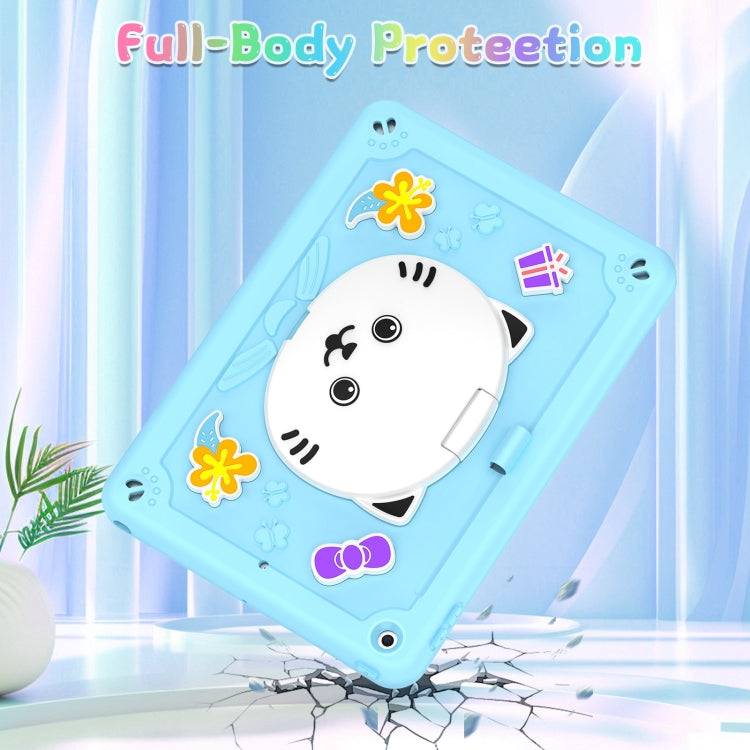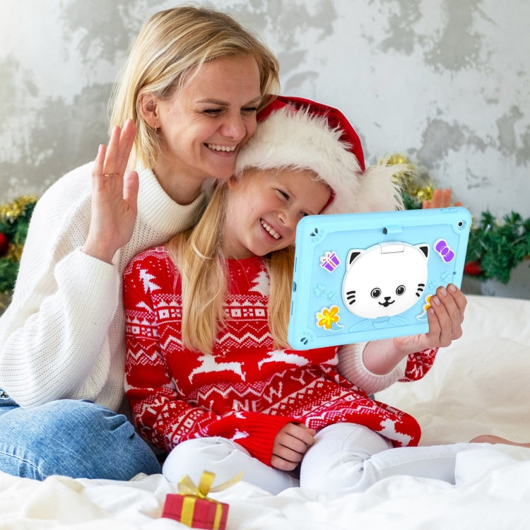 For iPad 10.2 2021 / 2020 / 2019 Cat Holder Silicone Hybrid PC Tablet Case with Strap(Sky Blue)