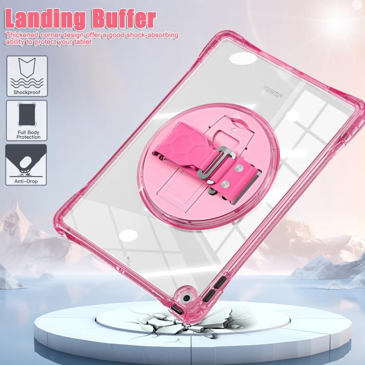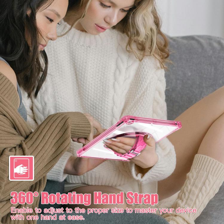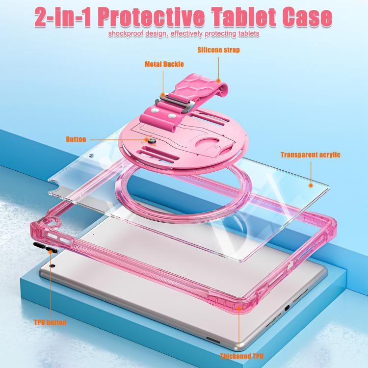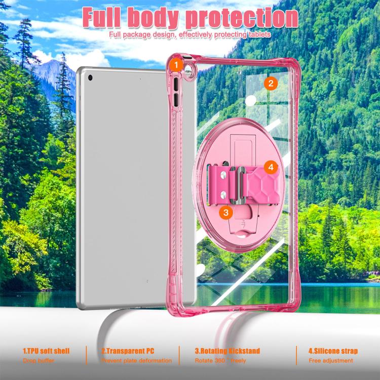 For iPad 10.2 2021 / 2020 / 2019 Rotation Grip Holder TPU Hybrid Clear PC Tablet Case(Red Rose)