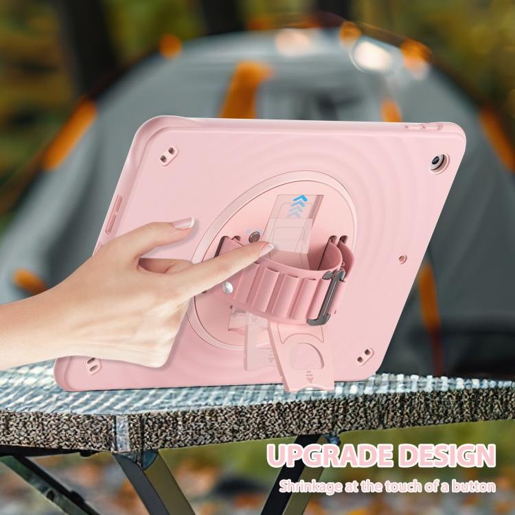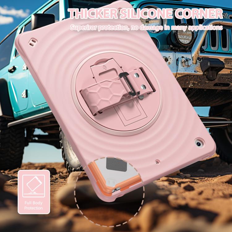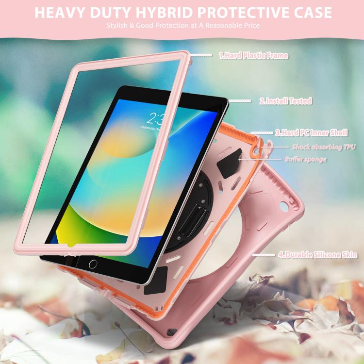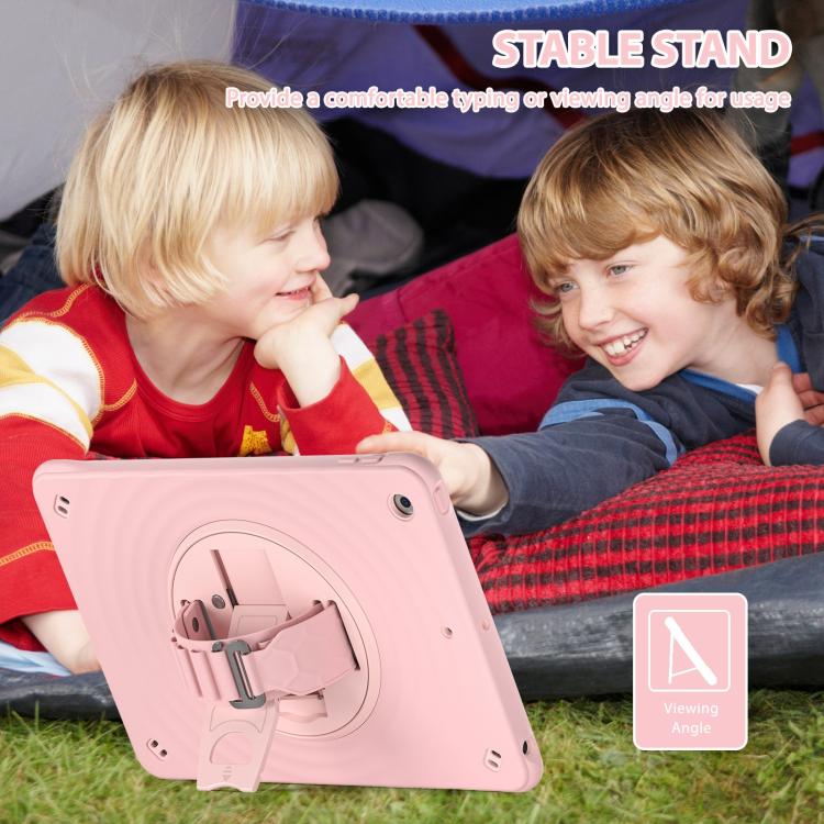 For iPad 10.2 2021 / 2020 / 2019 Rotation Holder Silicone Hybrid PC Tablet Case(Pink)