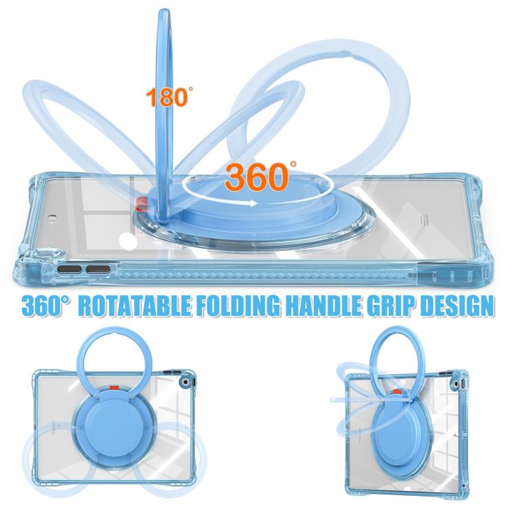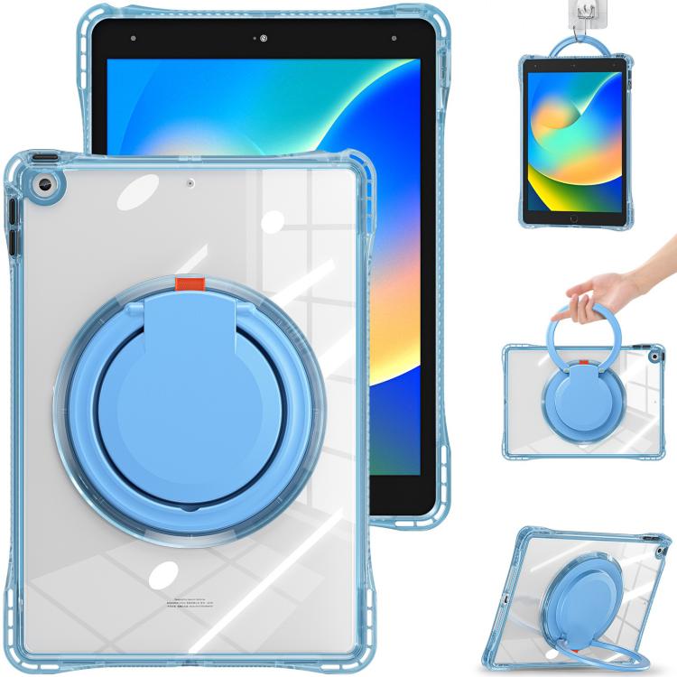 For iPad 10.2 2021 / 2020 / 2019 Rotation Ring Handle TPU Hybrid Clear PC Tablet Case(Light Blue)
