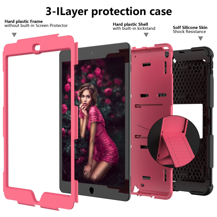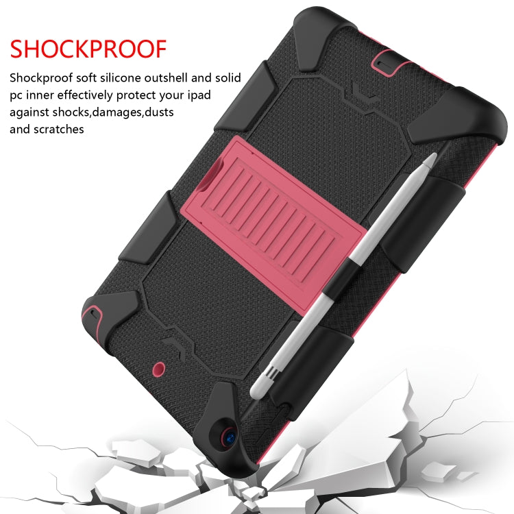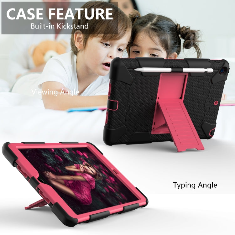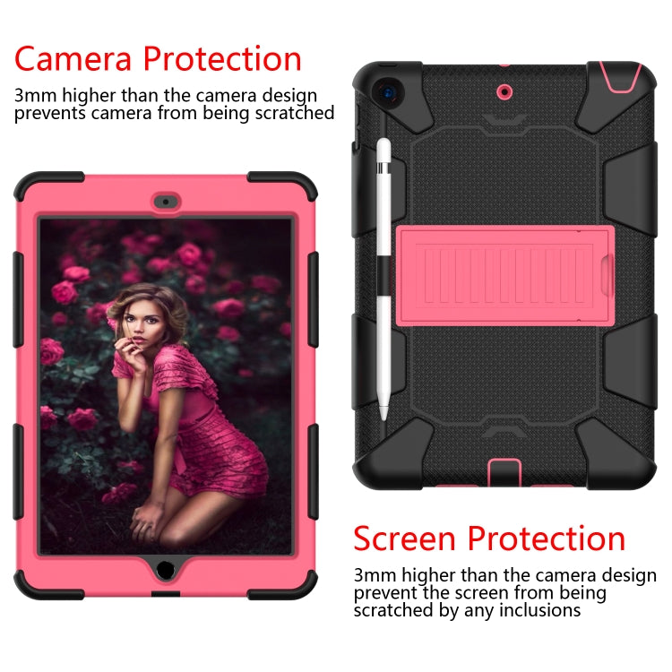 For iPad 10.2 Shockproof Two-Color Silicone Protection Case with Holder & Pen Slot(Black+Hot Pink)