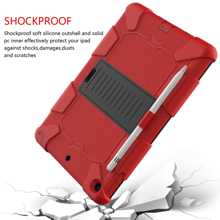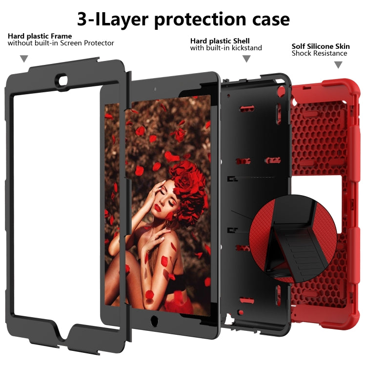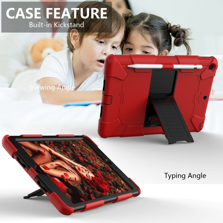 For iPad 10.2 Shockproof Two-Color Silicone Protection Case with Holder & Pen Slot(Red+Black)