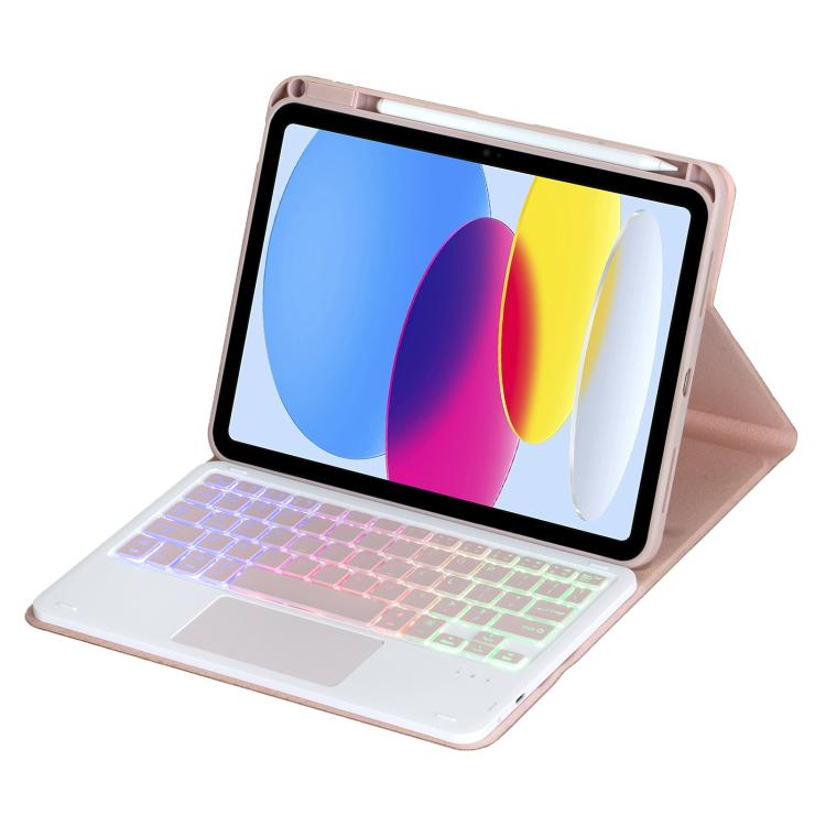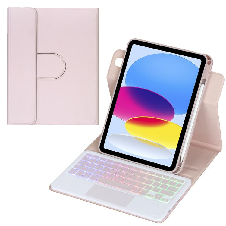 For iPad 2025 / 2022 360-degree Rotation Backlight Bluetooth Keyboard Leather Tablet Case with Touchpad(Pink)
