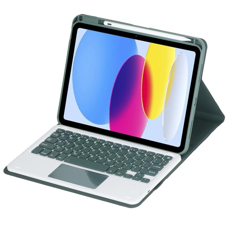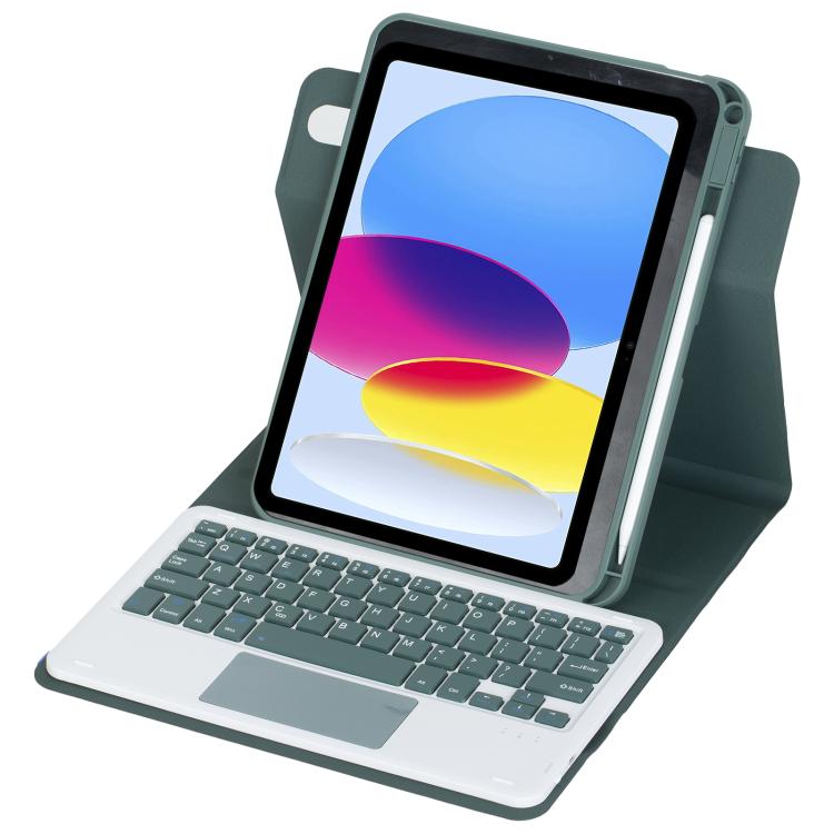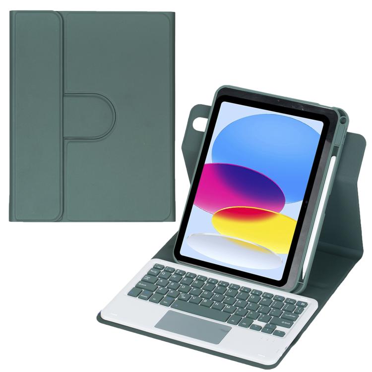 For iPad 2025 / 2022 360-degree Rotation Bluetooth Keyboard Leather Tablet Case with Touchpad(Dark Green)
