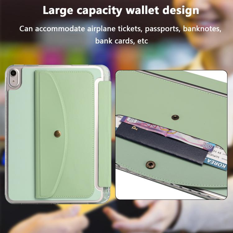 For iPad 2025 / 2022 Back Wallet Y-Fold Deformation Leather Smart Tablet Case(Green)