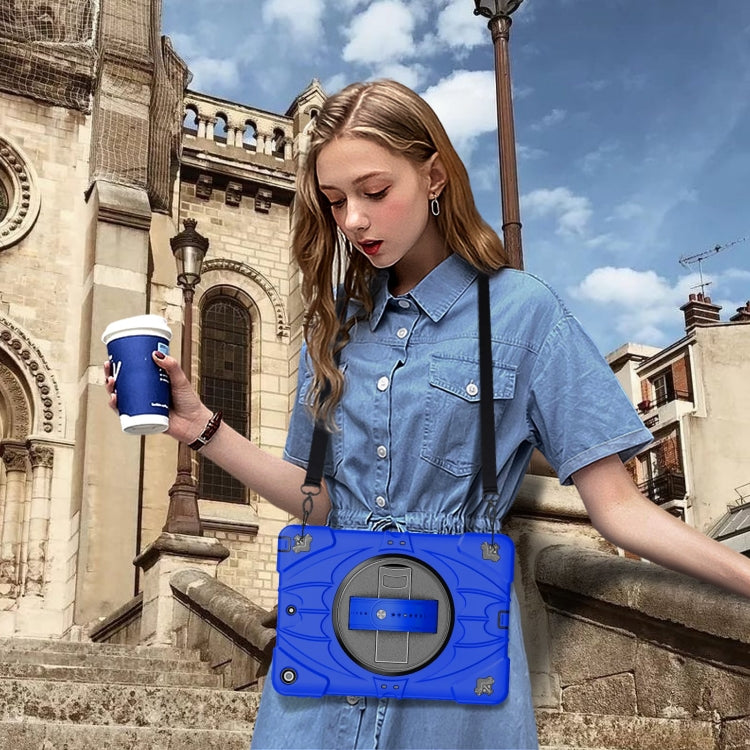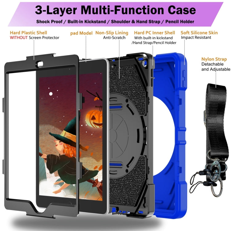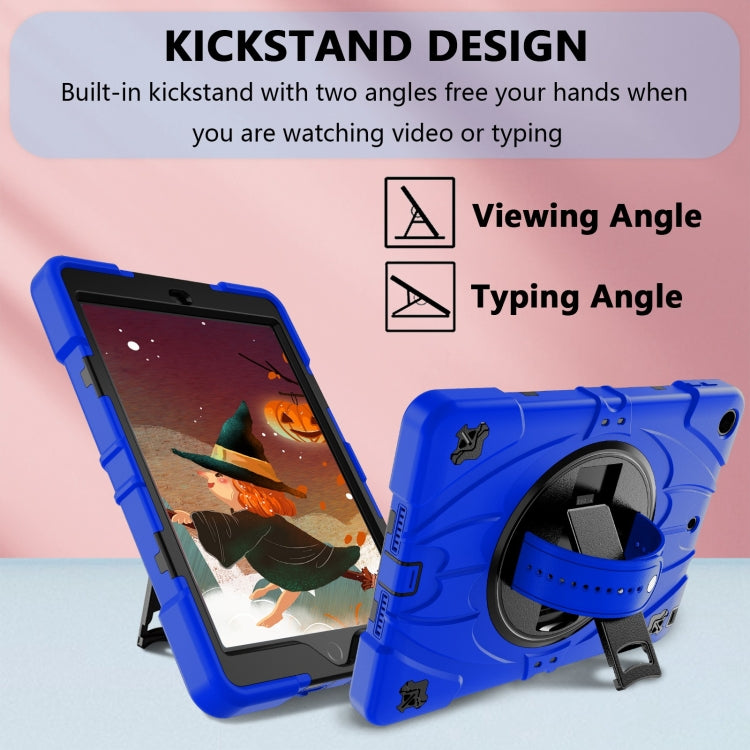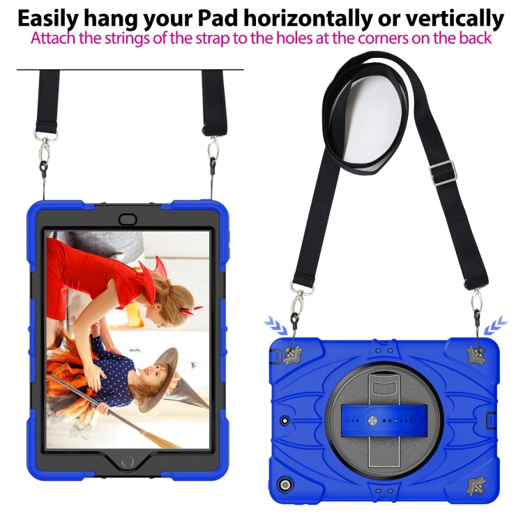 For iPad 9.7 2018 / 2017 / Air 2 Bat Hand Grip Turntable Stand Tablet Case(Blue Black)