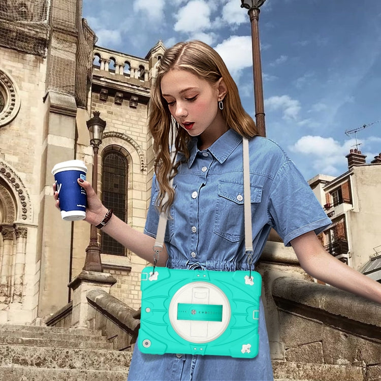 For iPad 9.7 2018 / 2017 / Air 2 Bat Hand Grip Turntable Stand Tablet Case(Mint Green White)