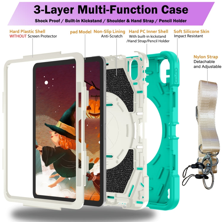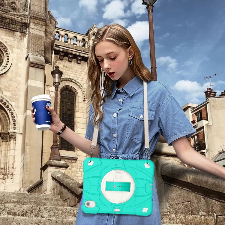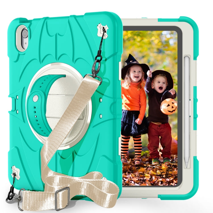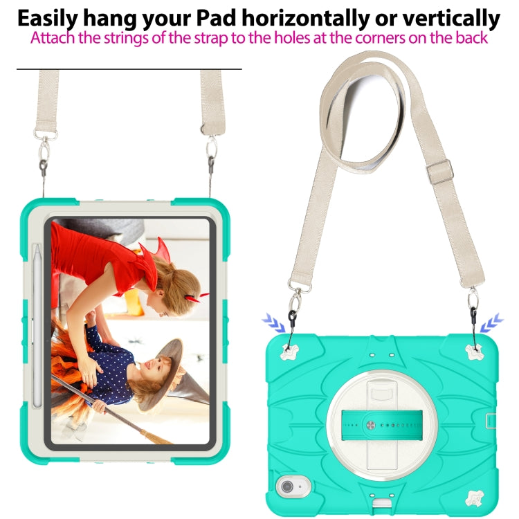 For iPad Air 11 2024 / 10.9 2022 Bat Hand Grip Turntable Stand Tablet Case(Mint Green White)