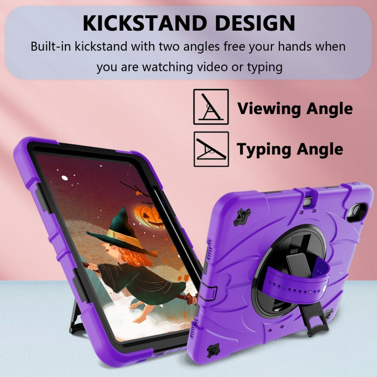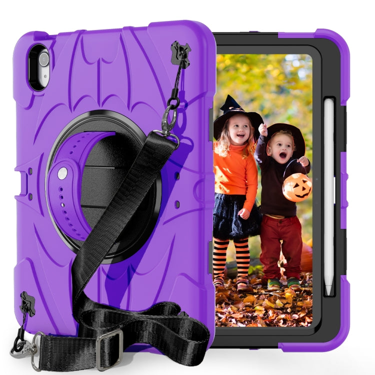 For iPad Air 11 2024 / 10.9 2022 Bat Hand Grip Turntable Stand Tablet Case(Purple Black)
